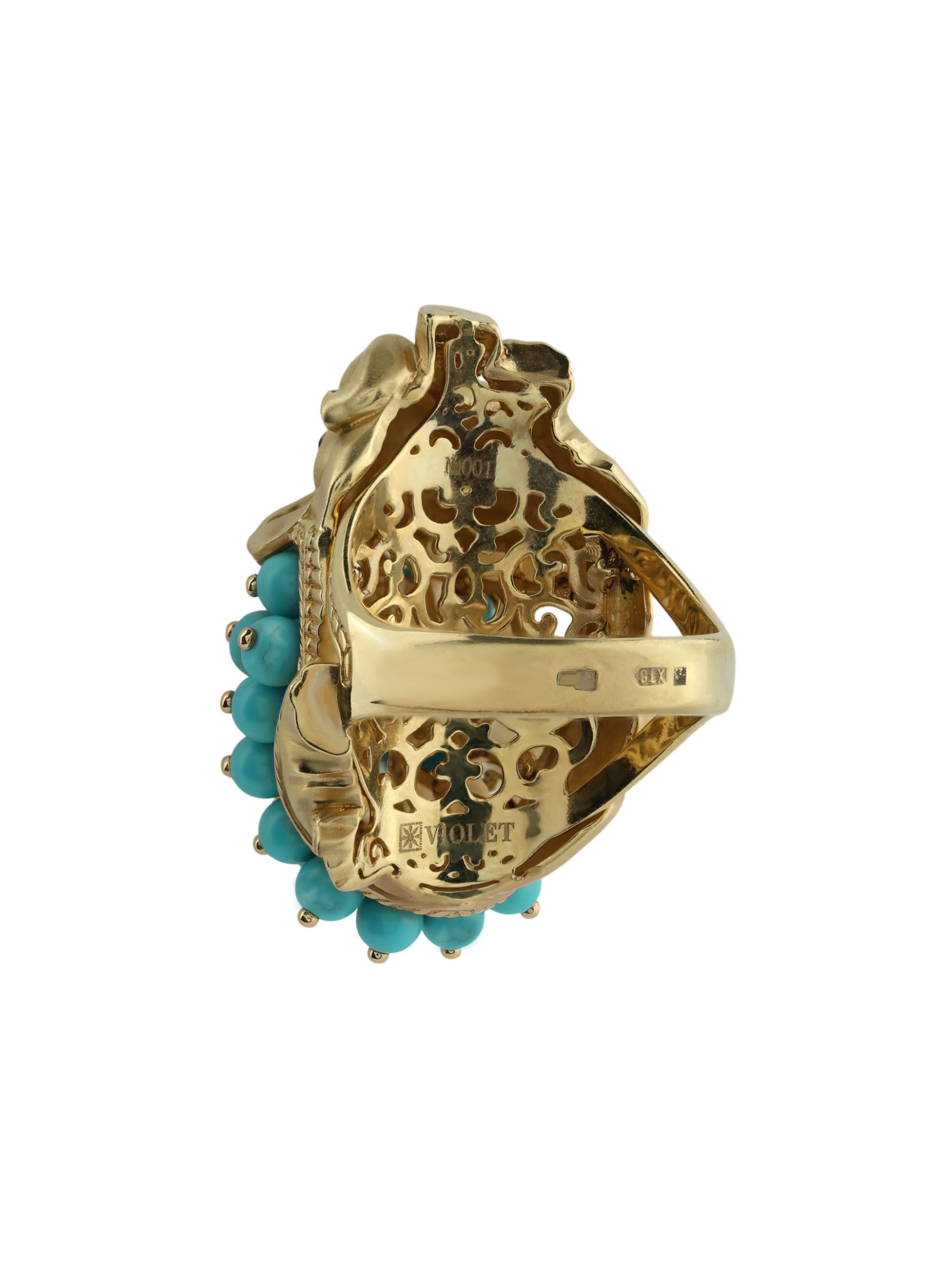Кольцо из лимонного золота c эмаль и бирюзой