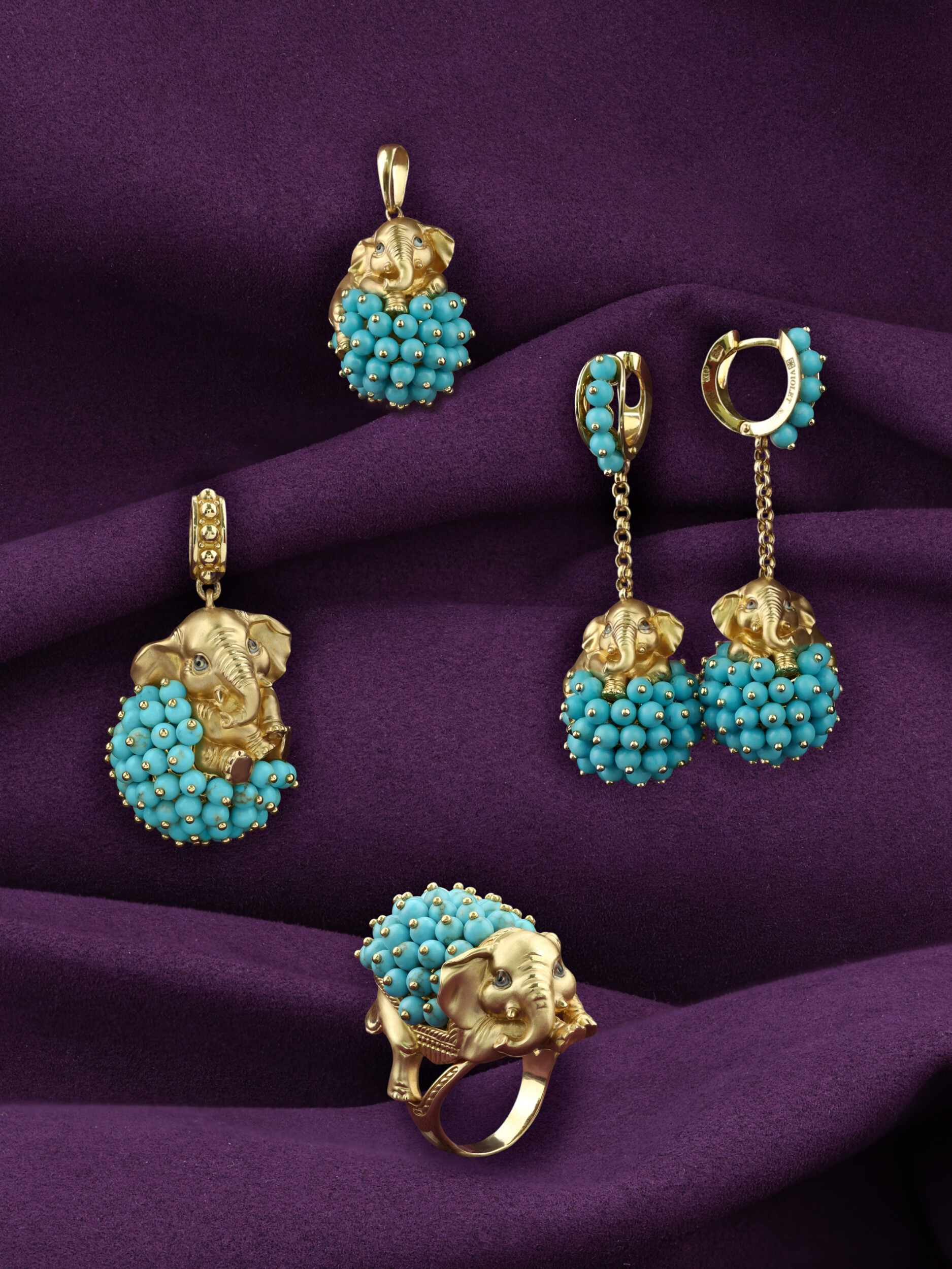 Кольцо из лимонного золота c эмаль и бирюзой