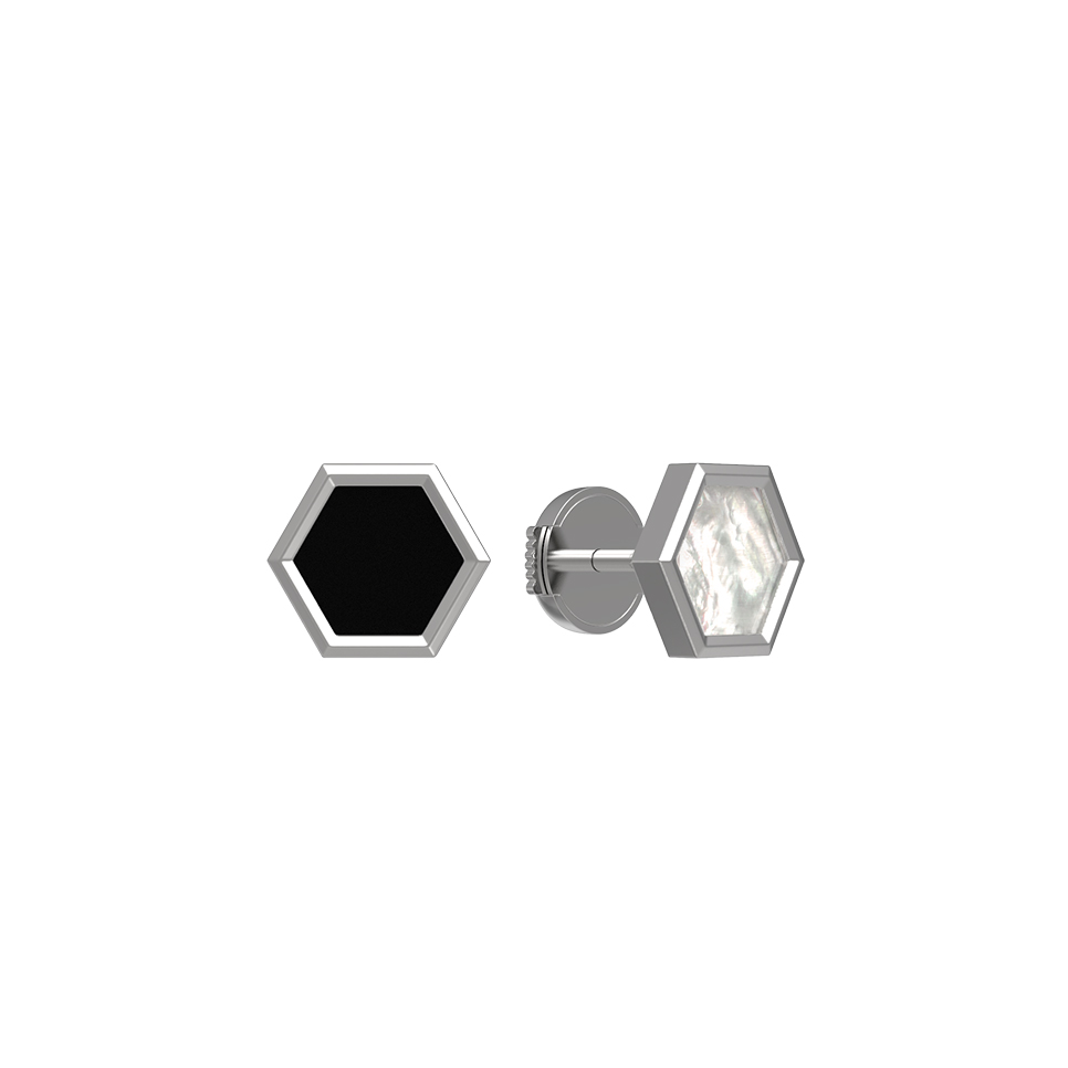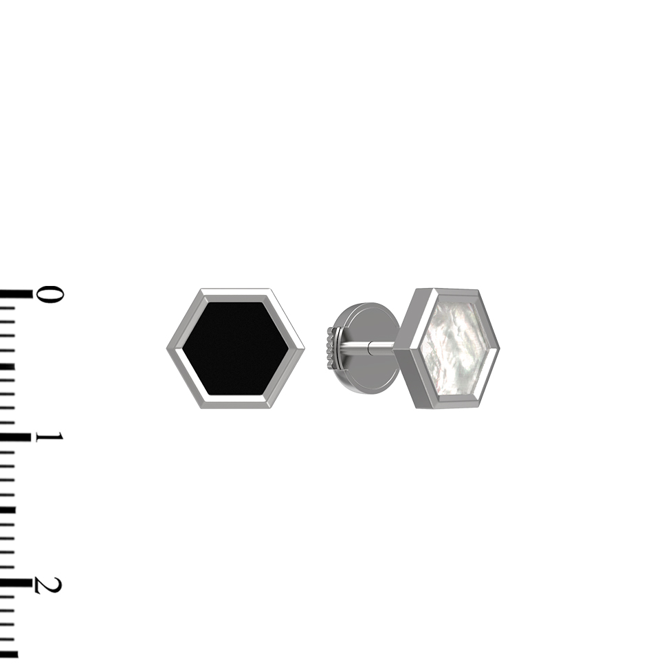 Серьги из белого золота c ониксом и перламутром