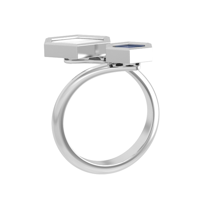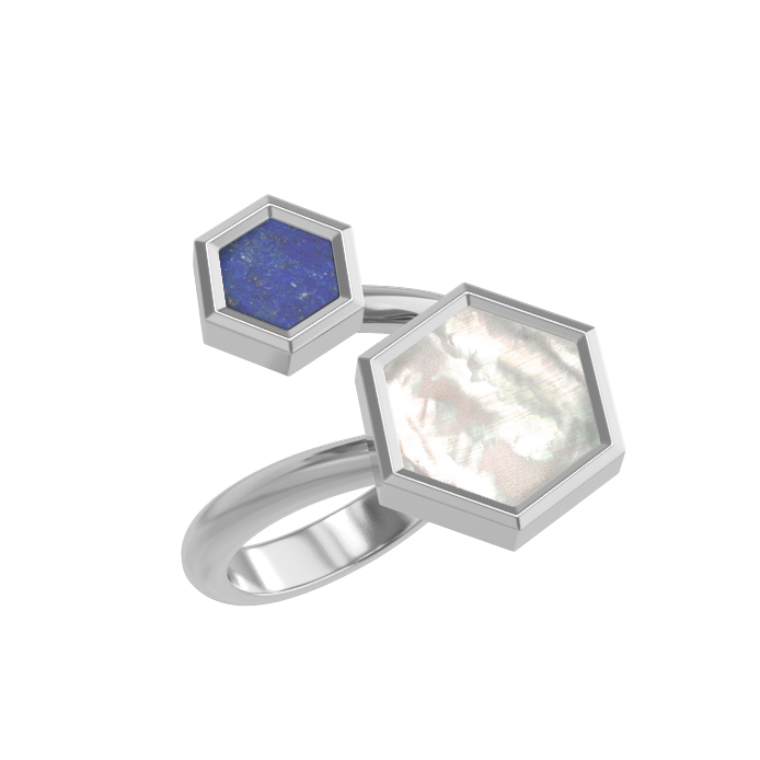 Кольцо из белого золота c лазуритом и перламутром