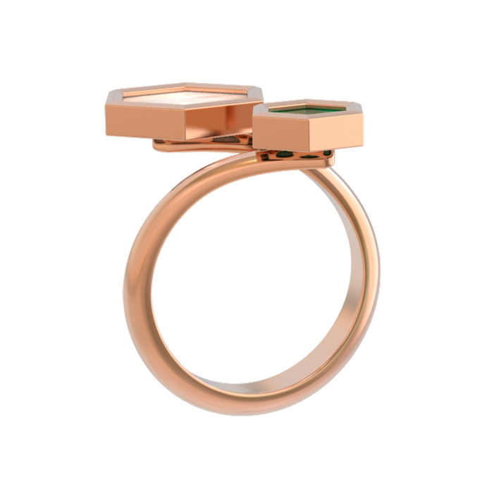 Кольцо из золота c малахитом и перламутром