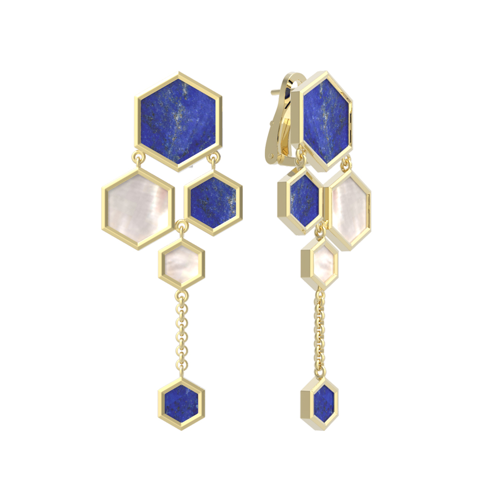 Серьги из лимонного золота c лазуритом и перламутром