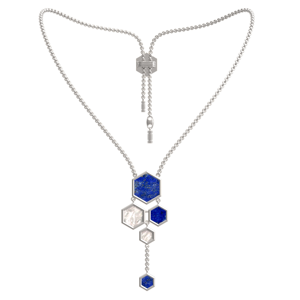 Колье из белого золота c лазуритом и перламутром