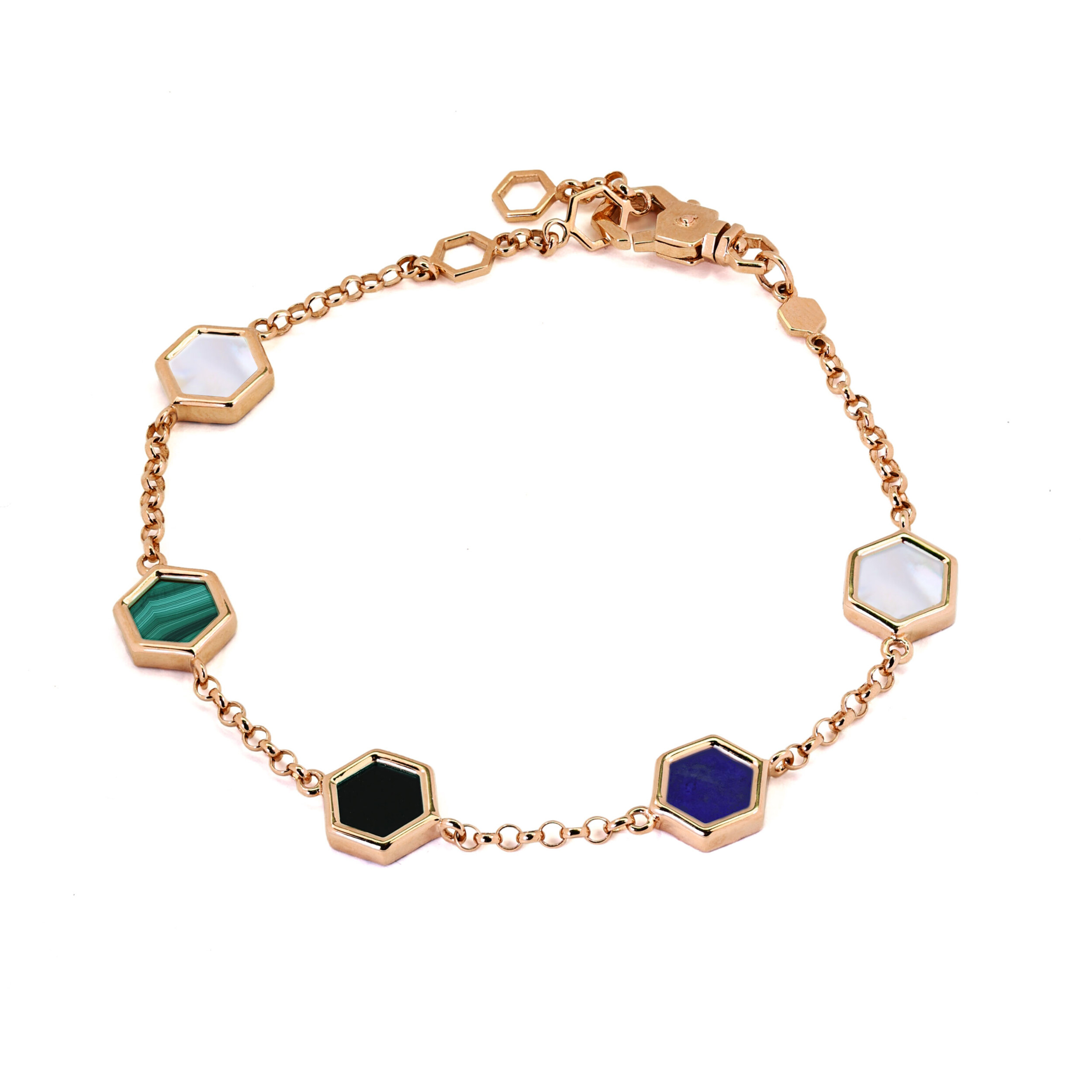 Браслет из золота c ониксом, лазуритом, малахитом и перламутром