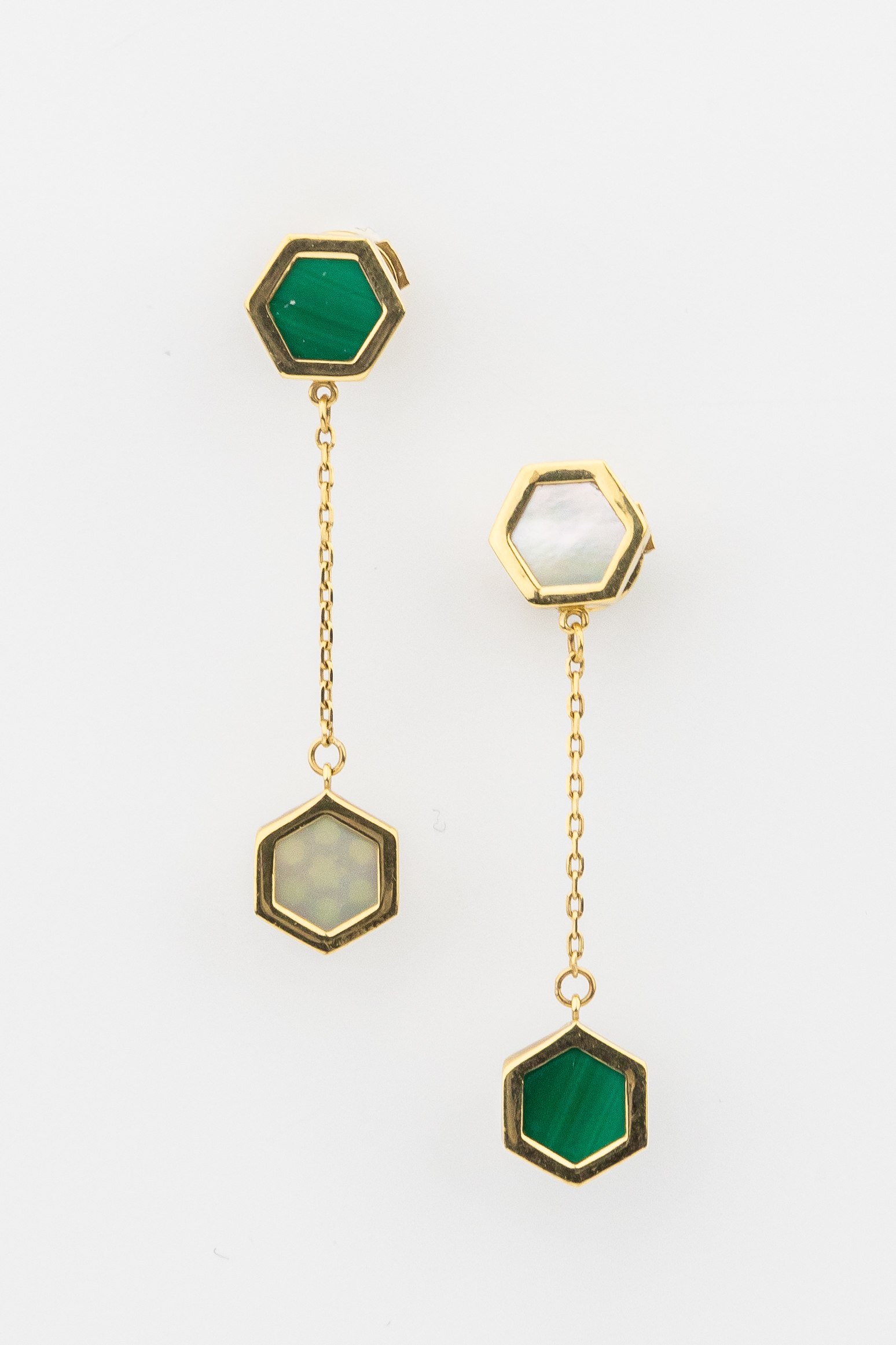 Серьги из лимонного золота c малахитом и перламутром