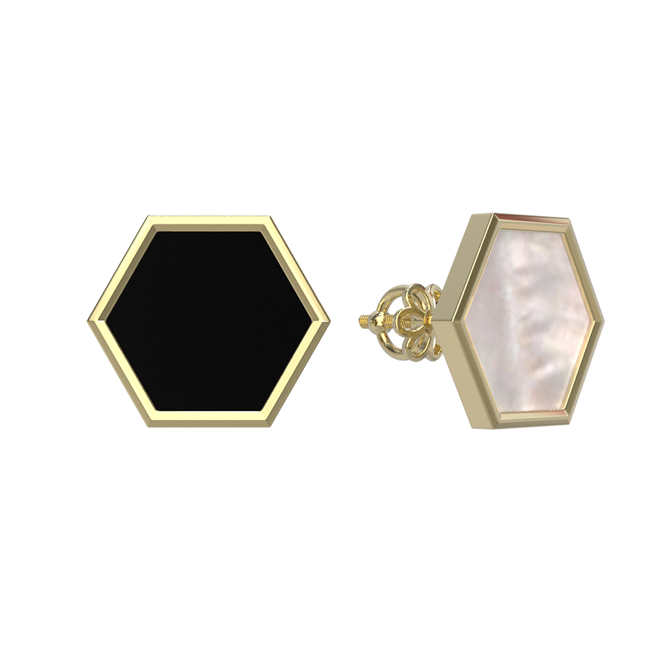 Серьги из лимонного золота c ониксом и перламутром