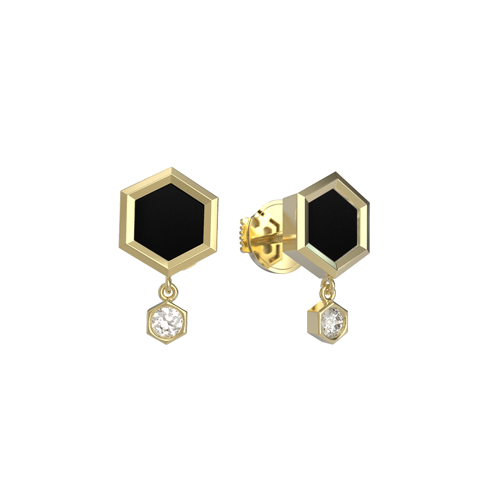 Серьги из лимонного золота c бриллиантами и ониксом