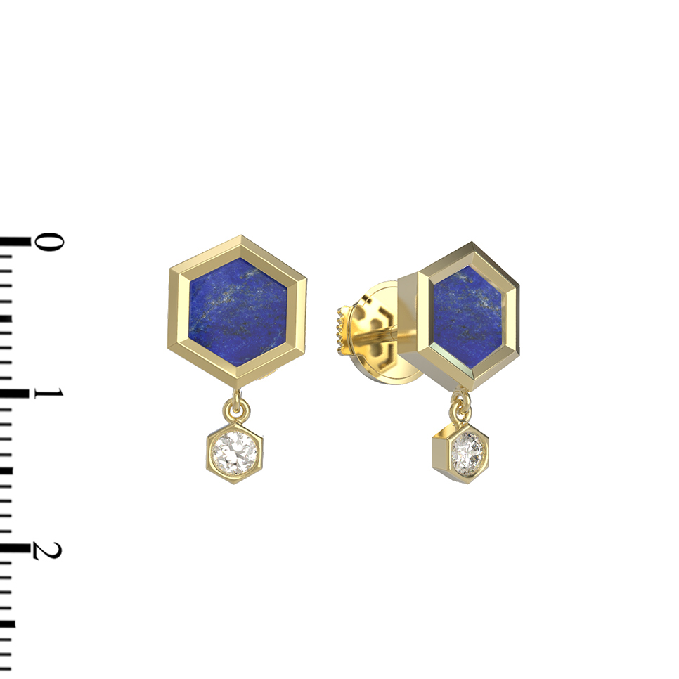 Серьги из лимонного золота c бриллиантами и лазуритом