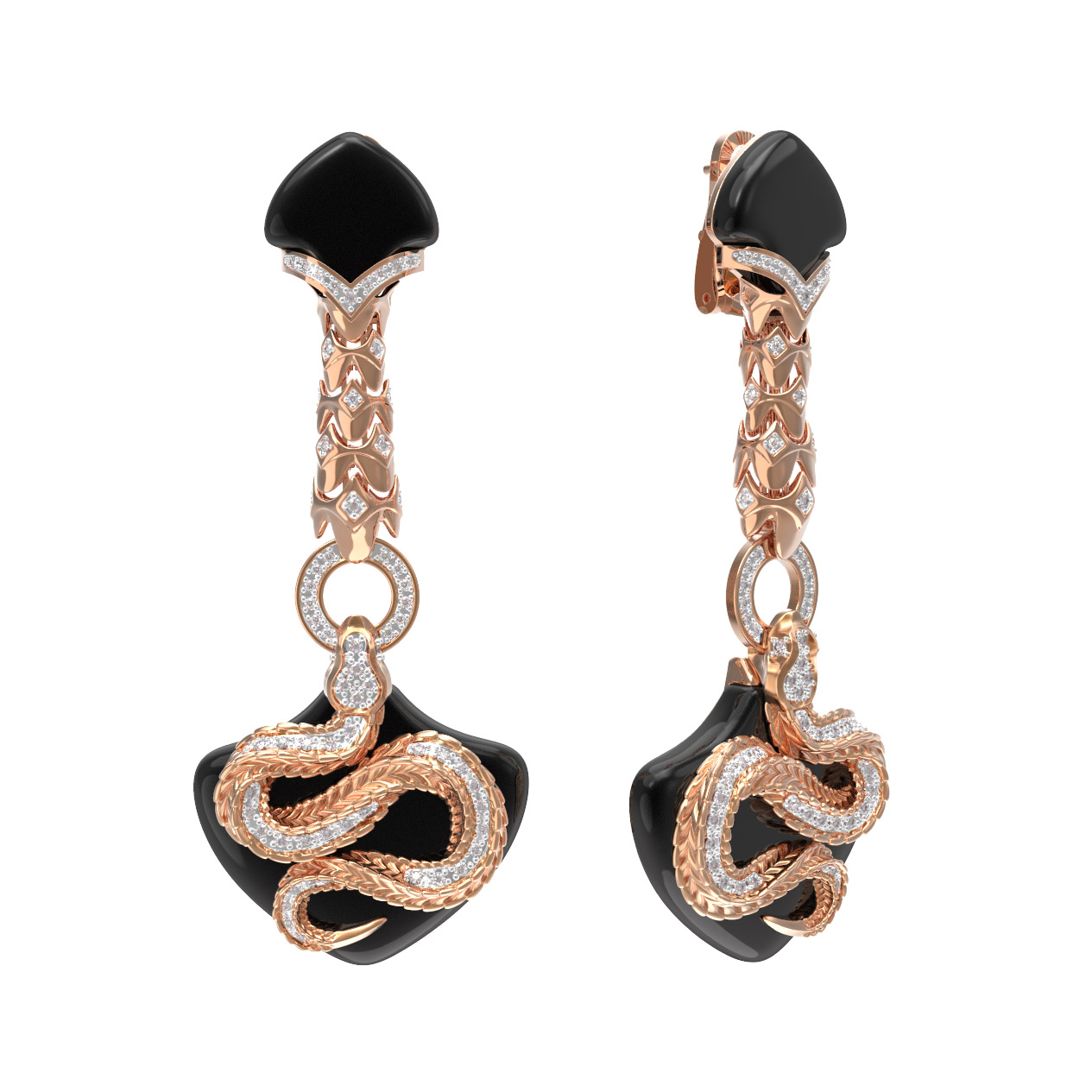 Серьги из золота c бриллиантами и ониксом