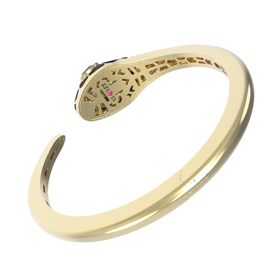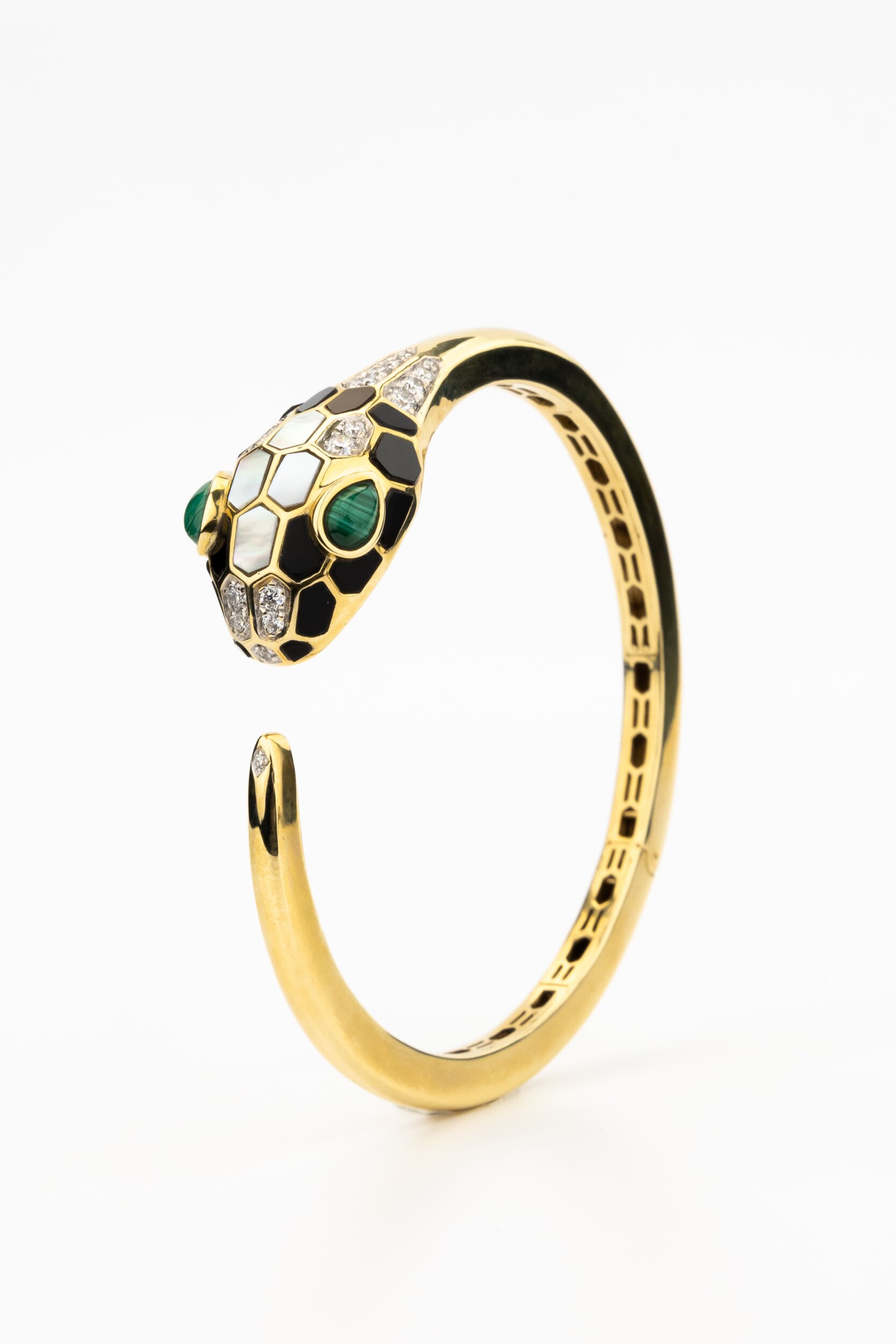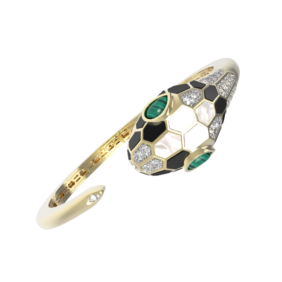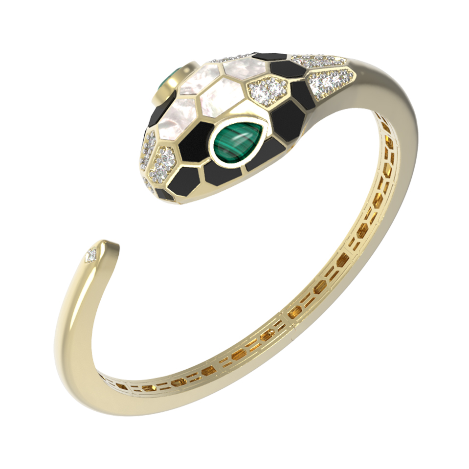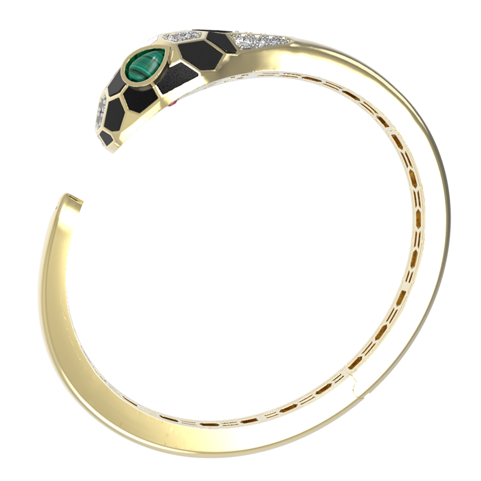 Браслет из лимонного золота c бриллиантами, рубином, ониксом, малахитом и перламутром