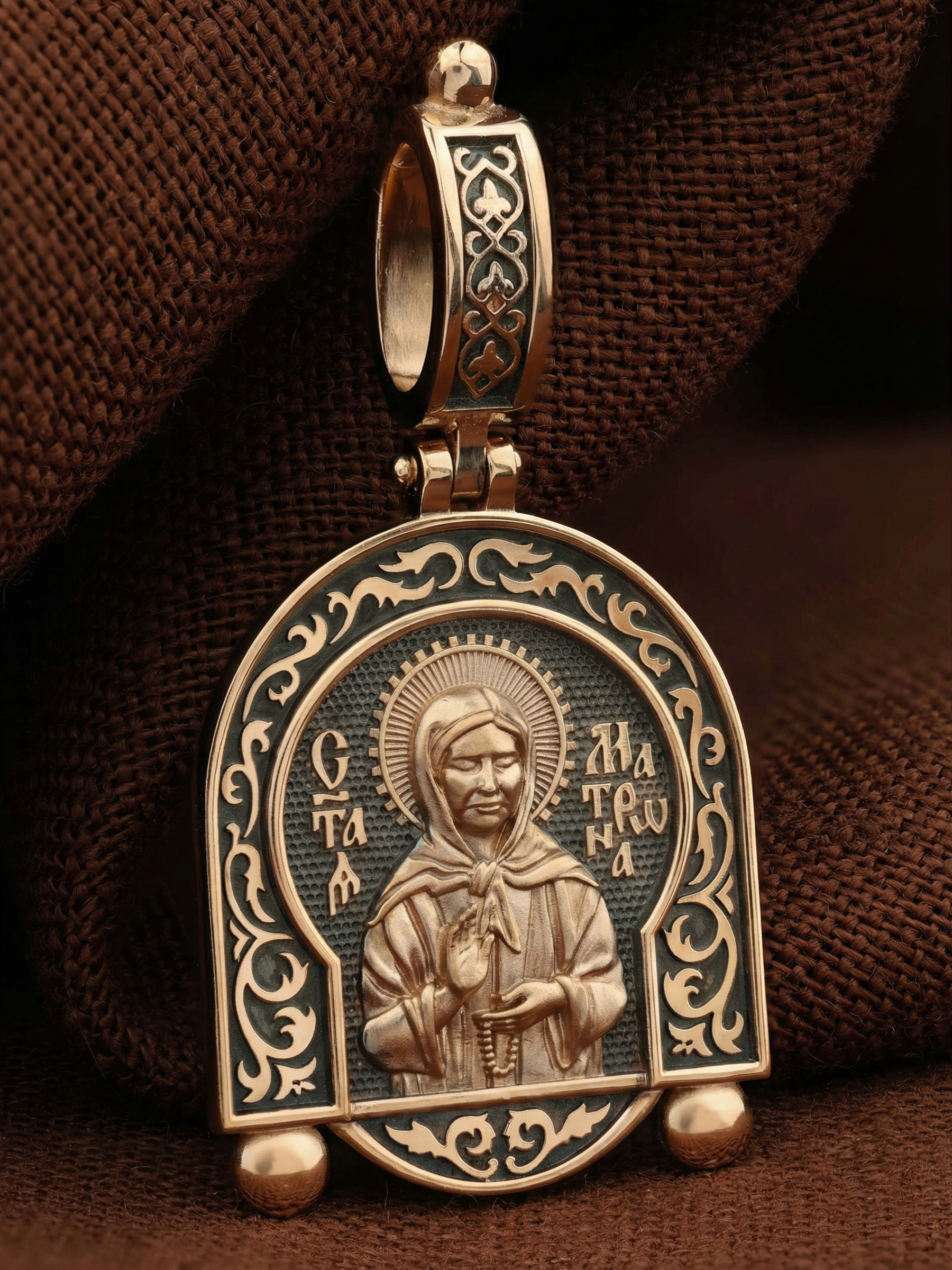 На лицевой стороне образка изображена Святая Матрона Московская.