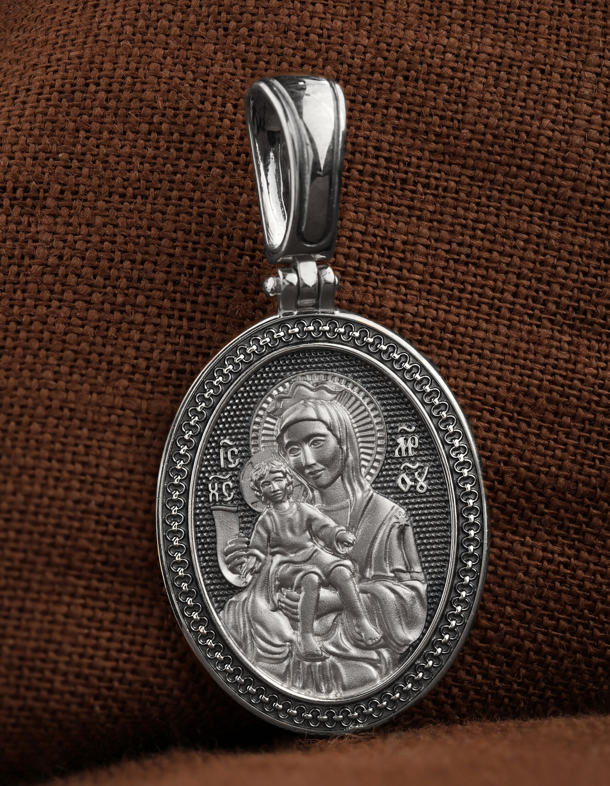 На обороте образка написана молитва:«Ныне к Тебе прибегаю, Пречистая Дево, спаси мя мольбами Твоими».