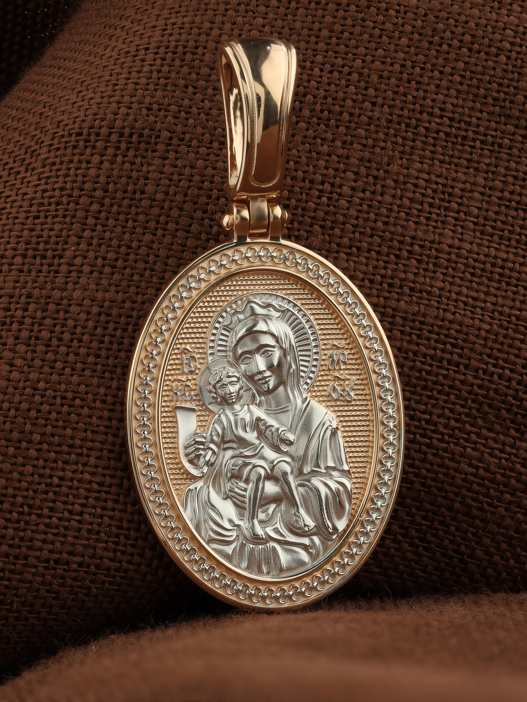 На обороте образка написана молитва:«Ныне к Тебе прибегаю, Пречистая Дево, спаси мя мольбами Твоими».