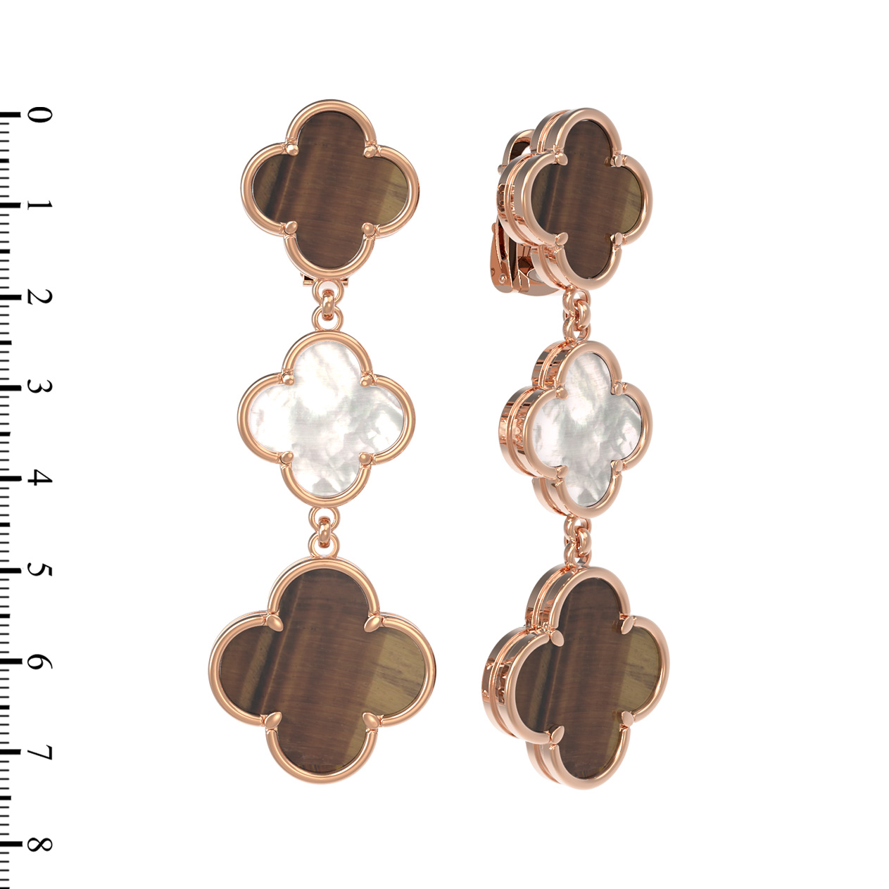 Серьги из золота c тигровым глазом и перламутром