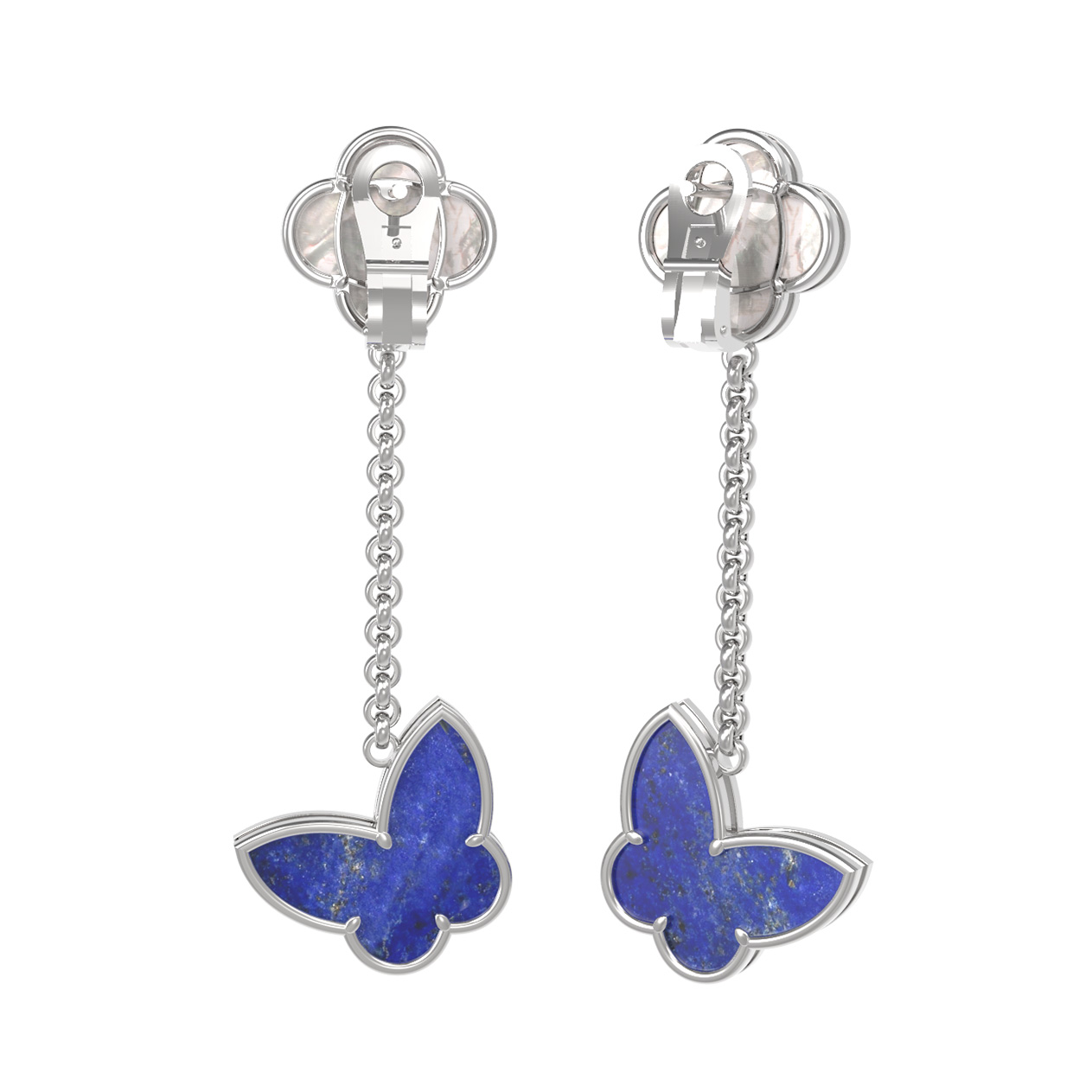 Серьги из белого золота c лазуритом и перламутром