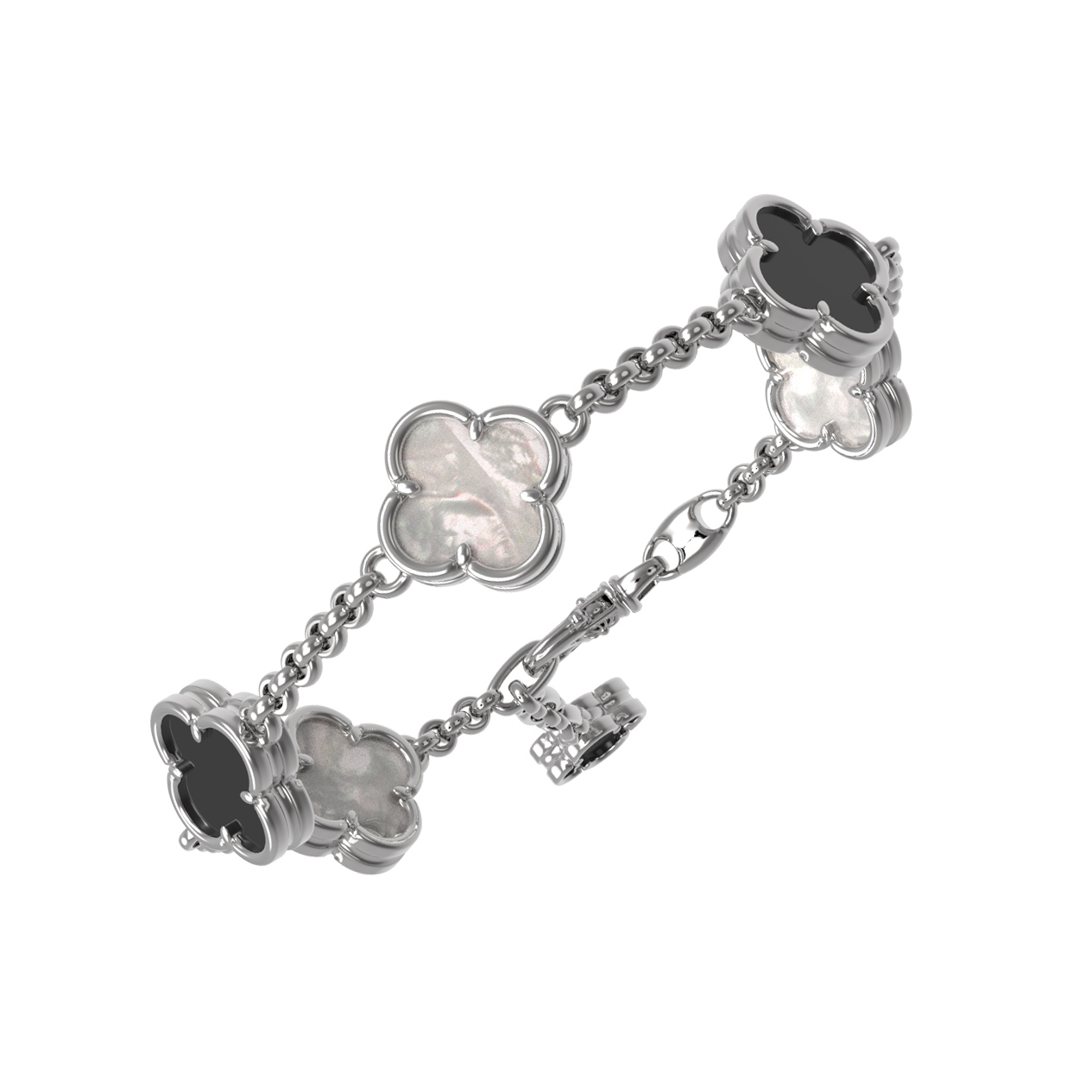 Браслет из белого золота c ониксом и перламутром