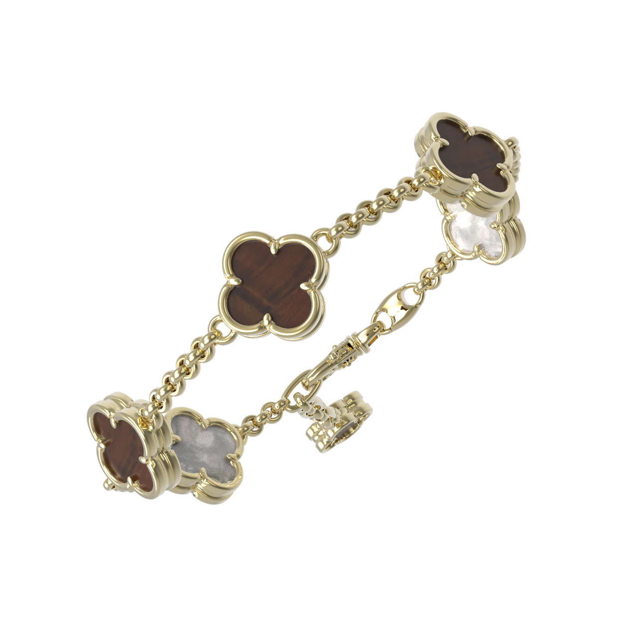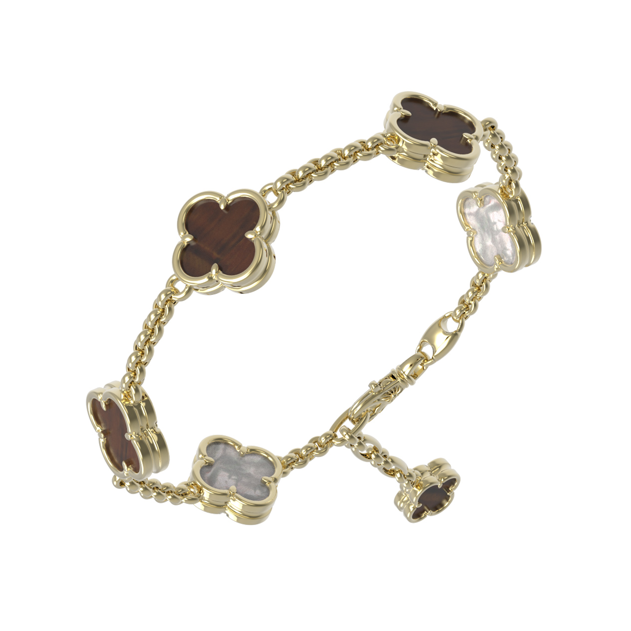 Браслет из лимонного золота c тигровым глазом и перламутром