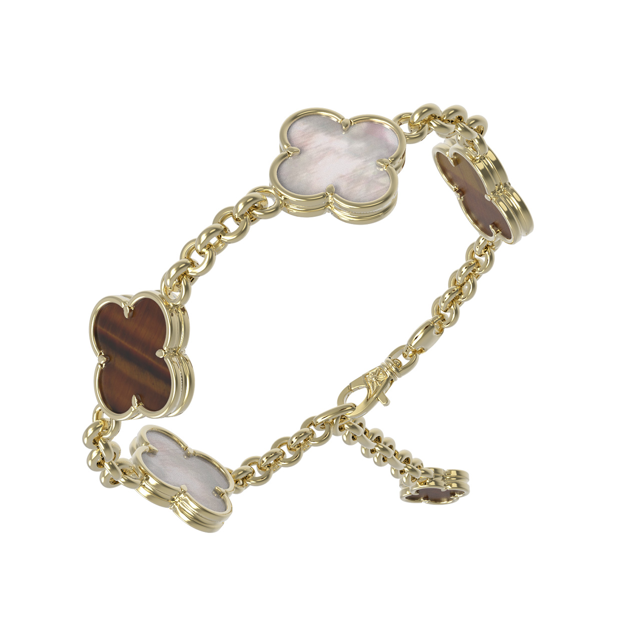 Браслет из лимонного золота c тигровым глазом и перламутром