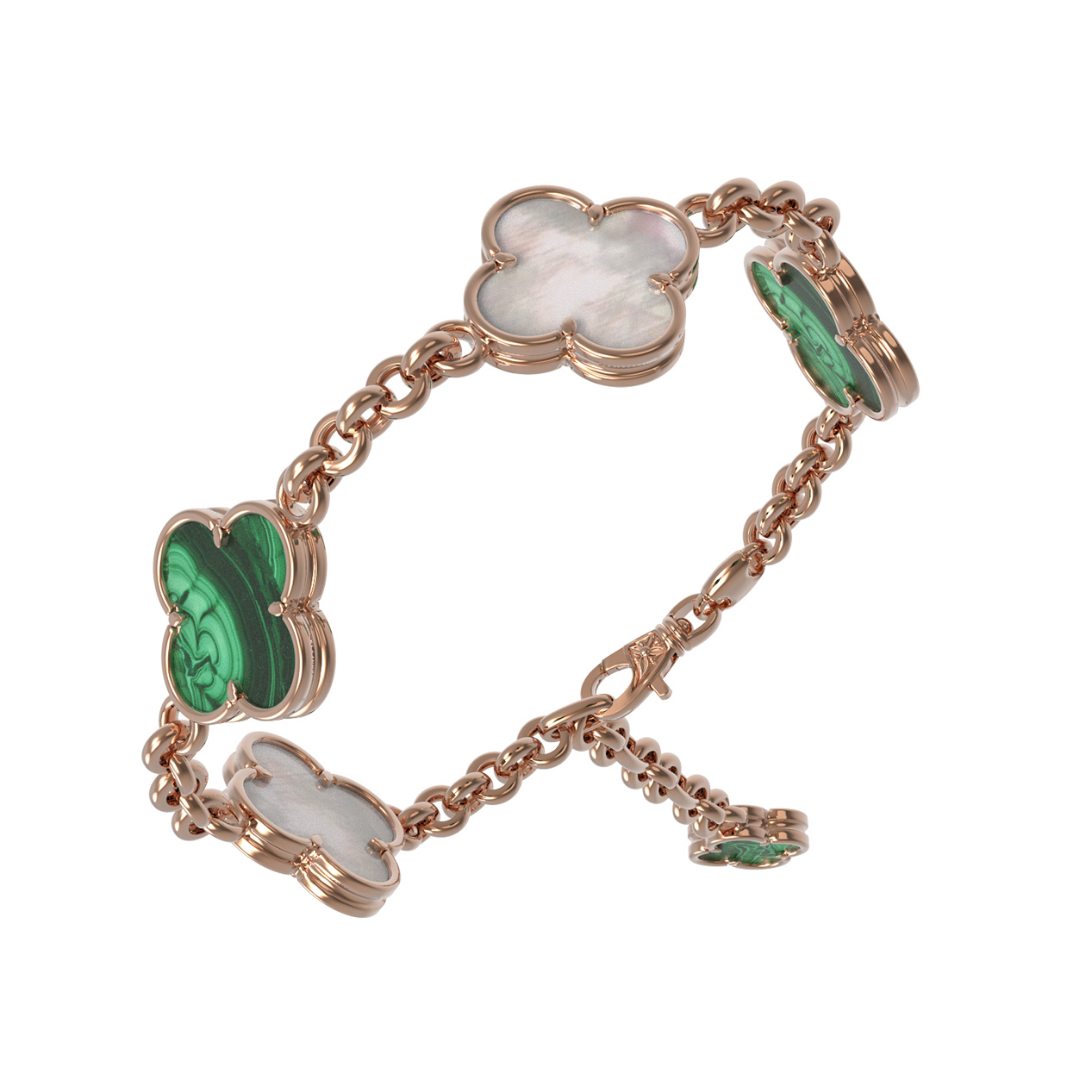 Браслет из золота c малахитом и перламутром