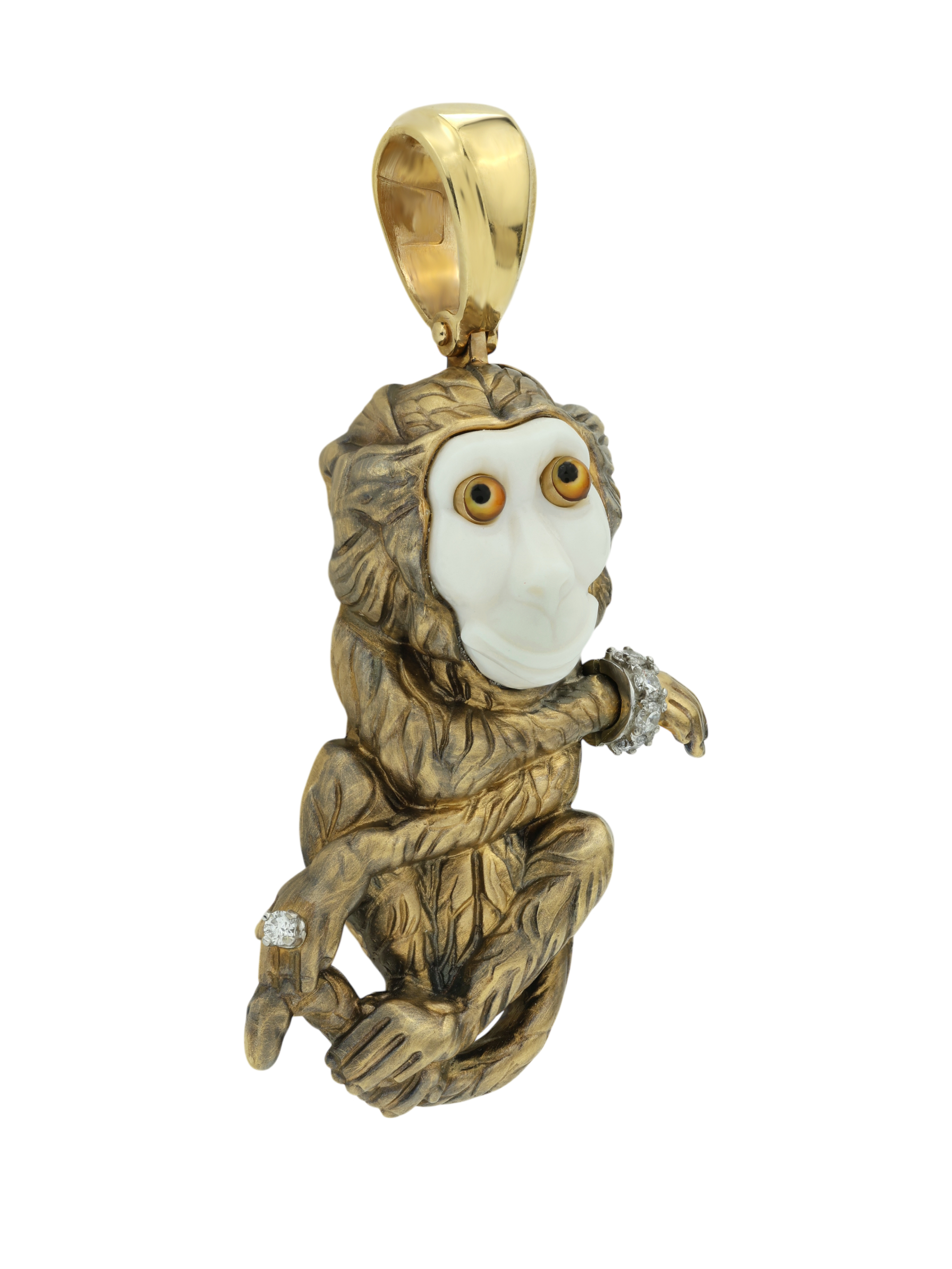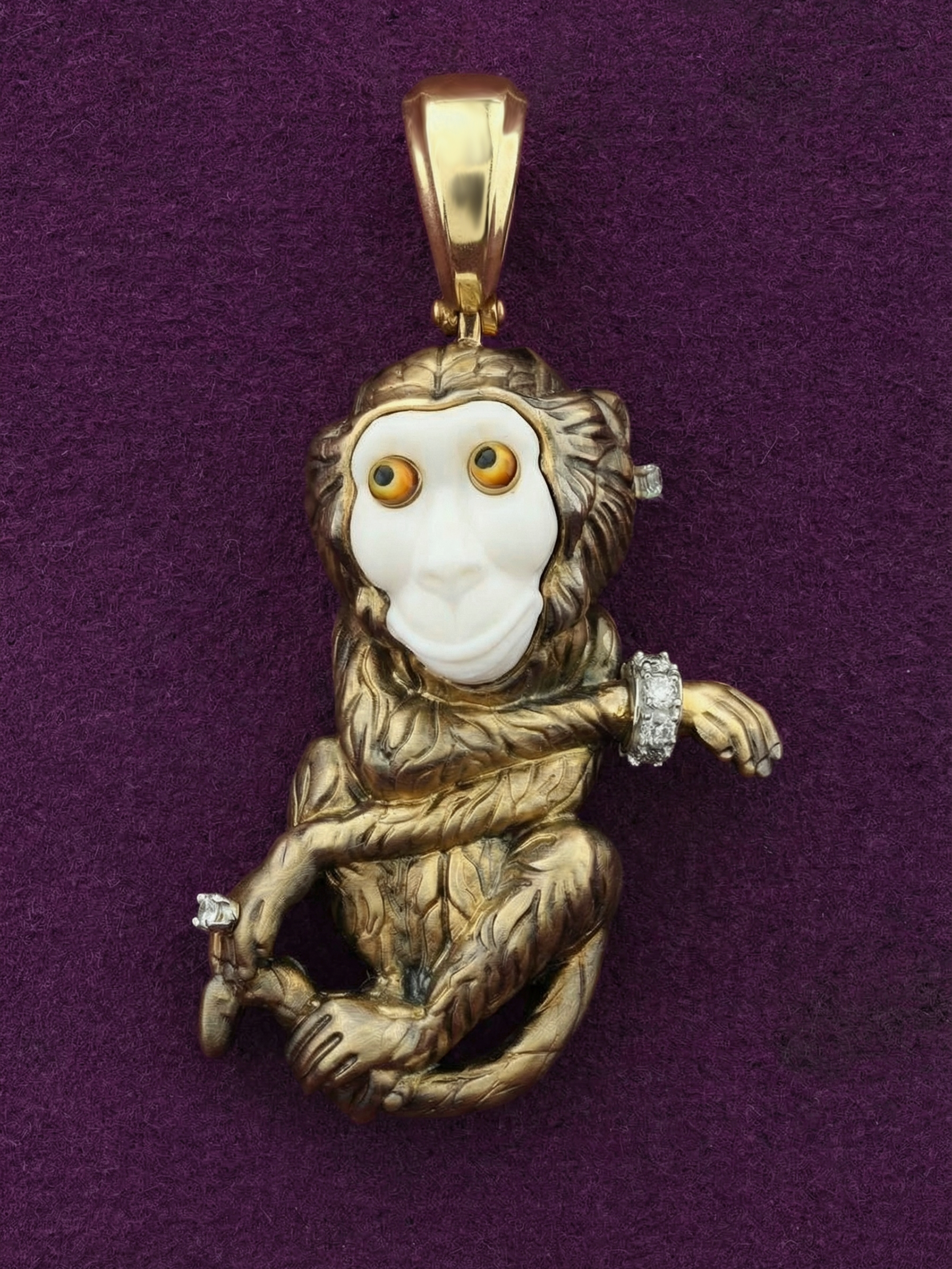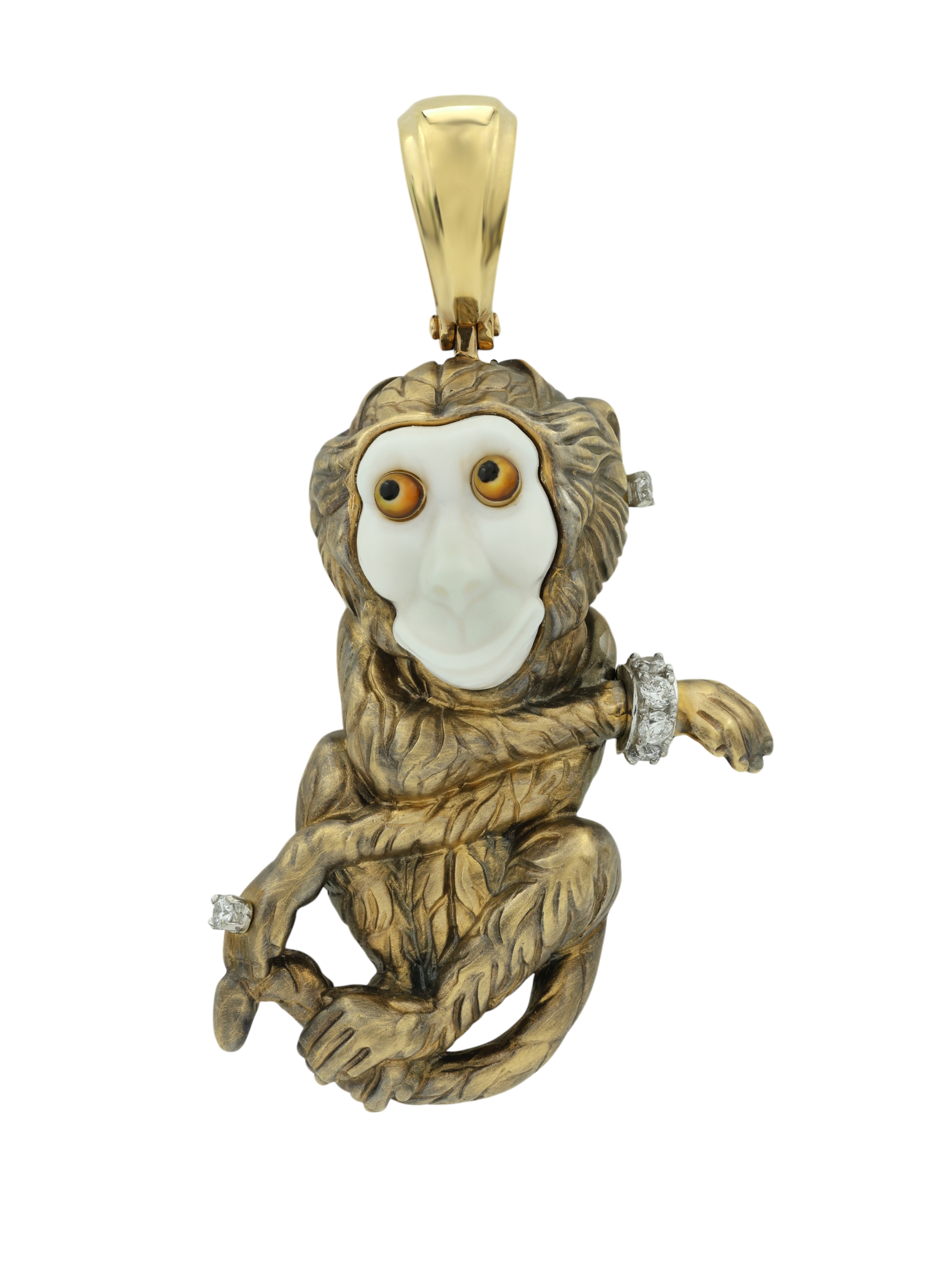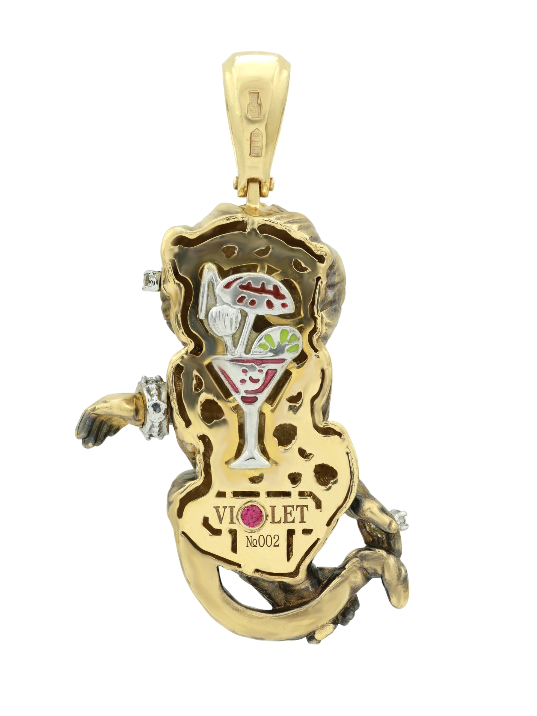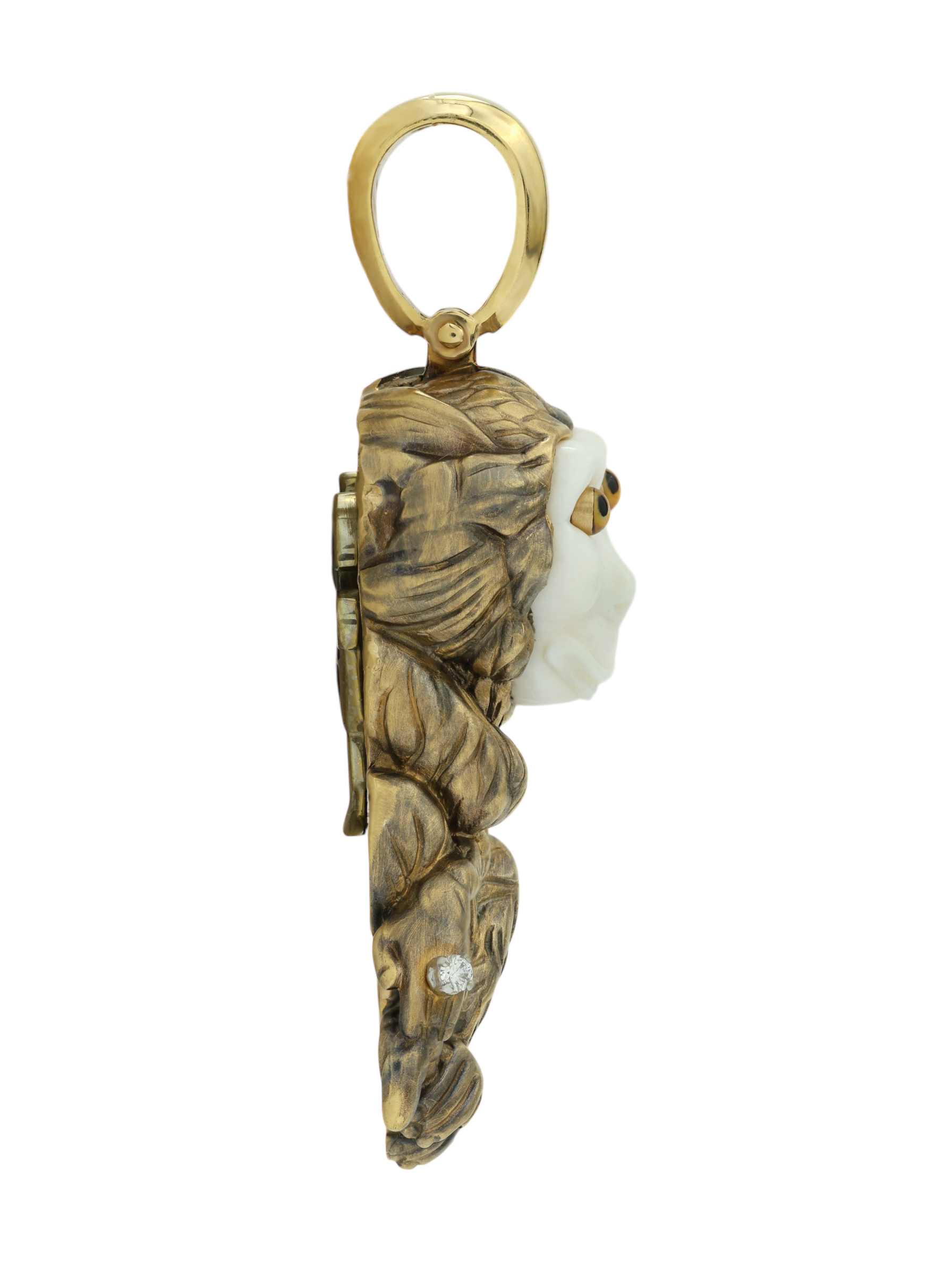 Подвеска из лимонного золота c эмаль, бриллиантами, рубином и бивнем мамонта