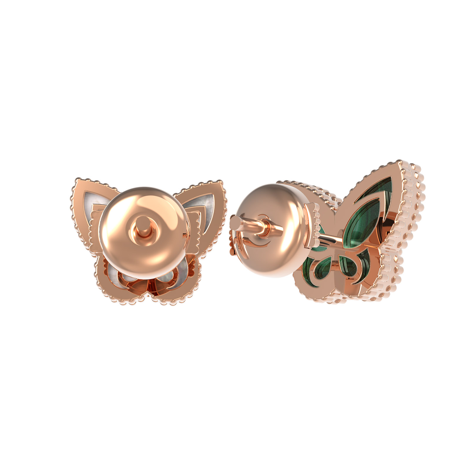 Серьги из золота c малахитом и перламутром