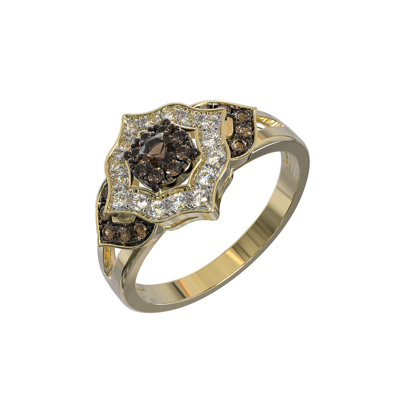 Кольцо из лимонного золота c бриллиантами