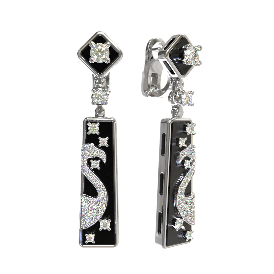 Серьги из белого золота c бриллиантами и ониксом