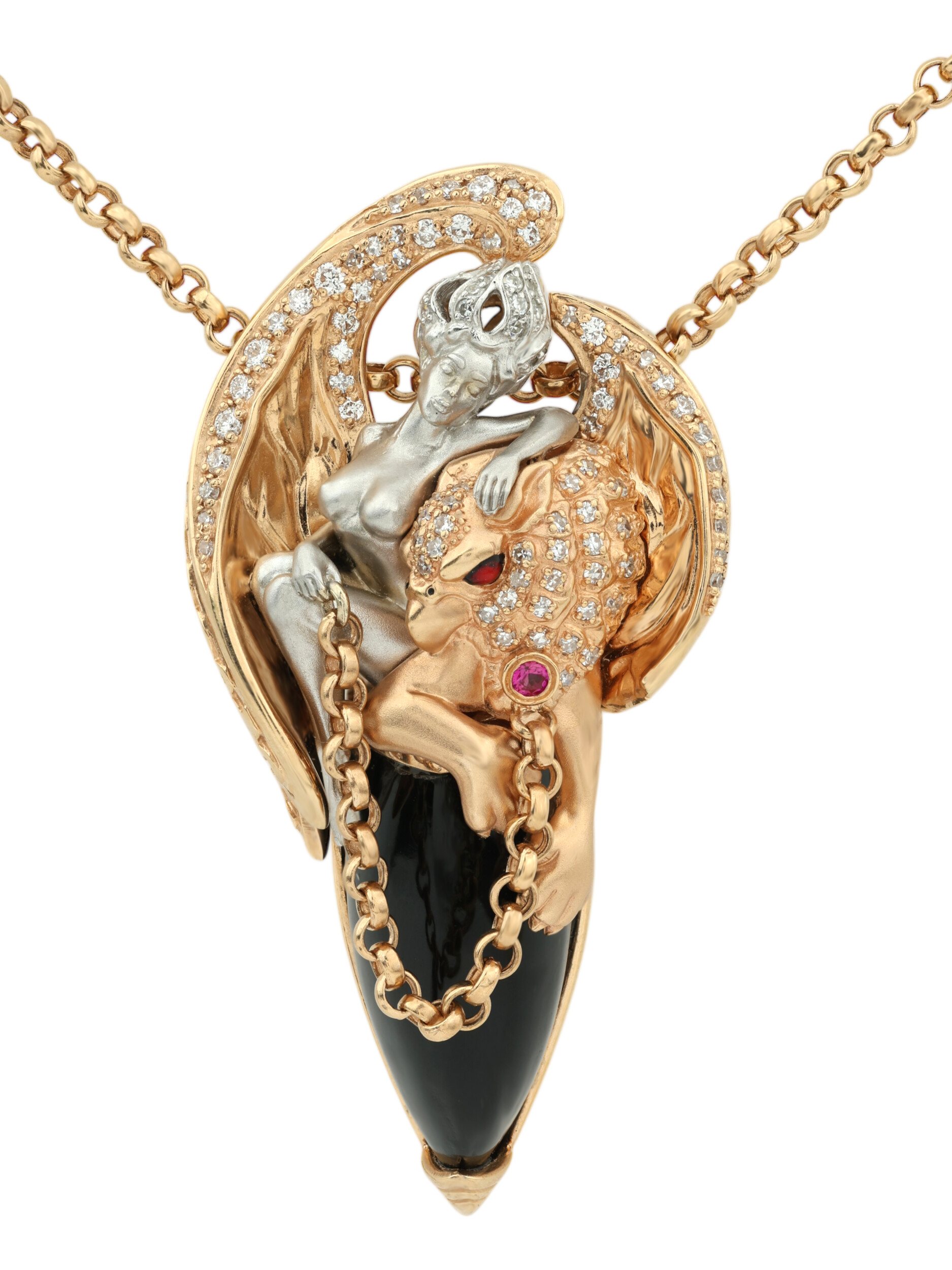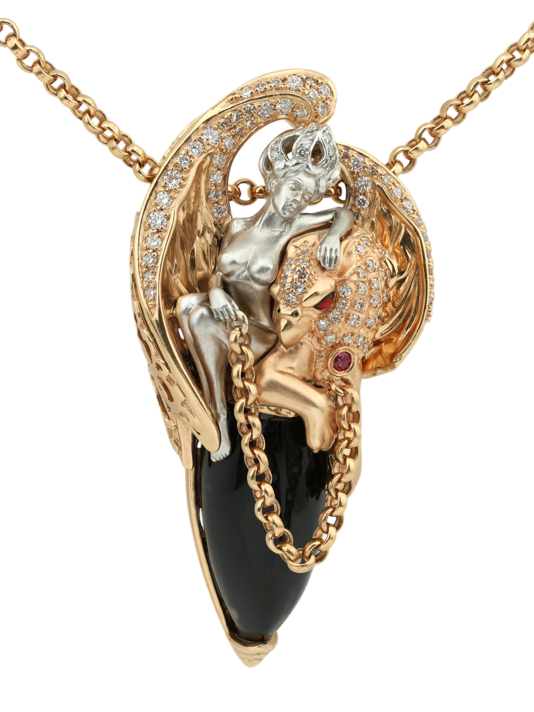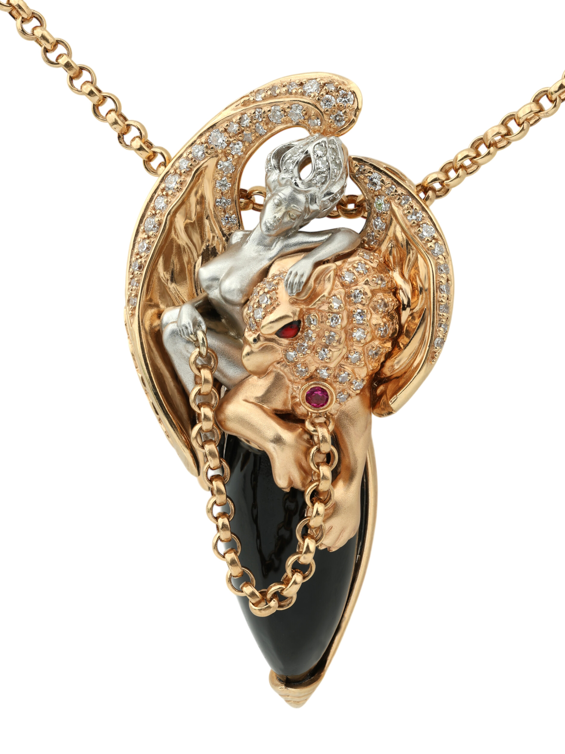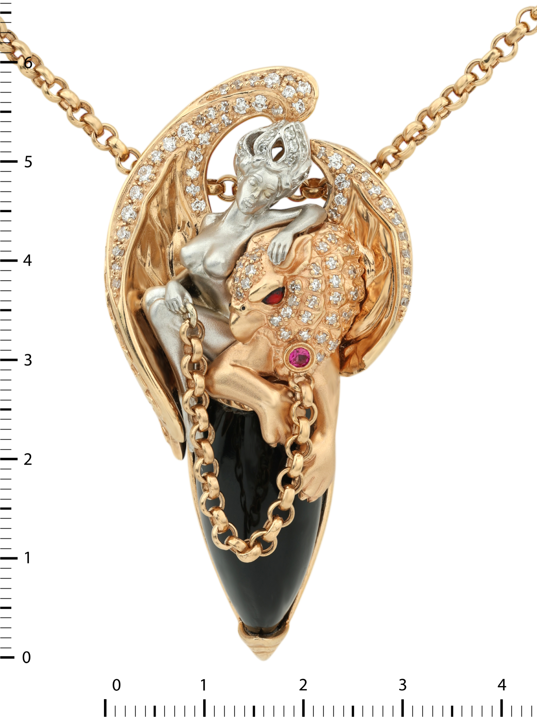 Колье из золота c эмаль, бриллиантами, рубином и ониксом