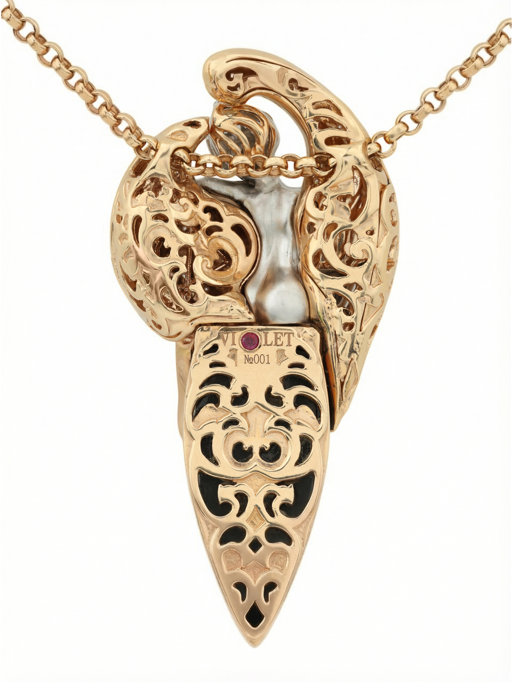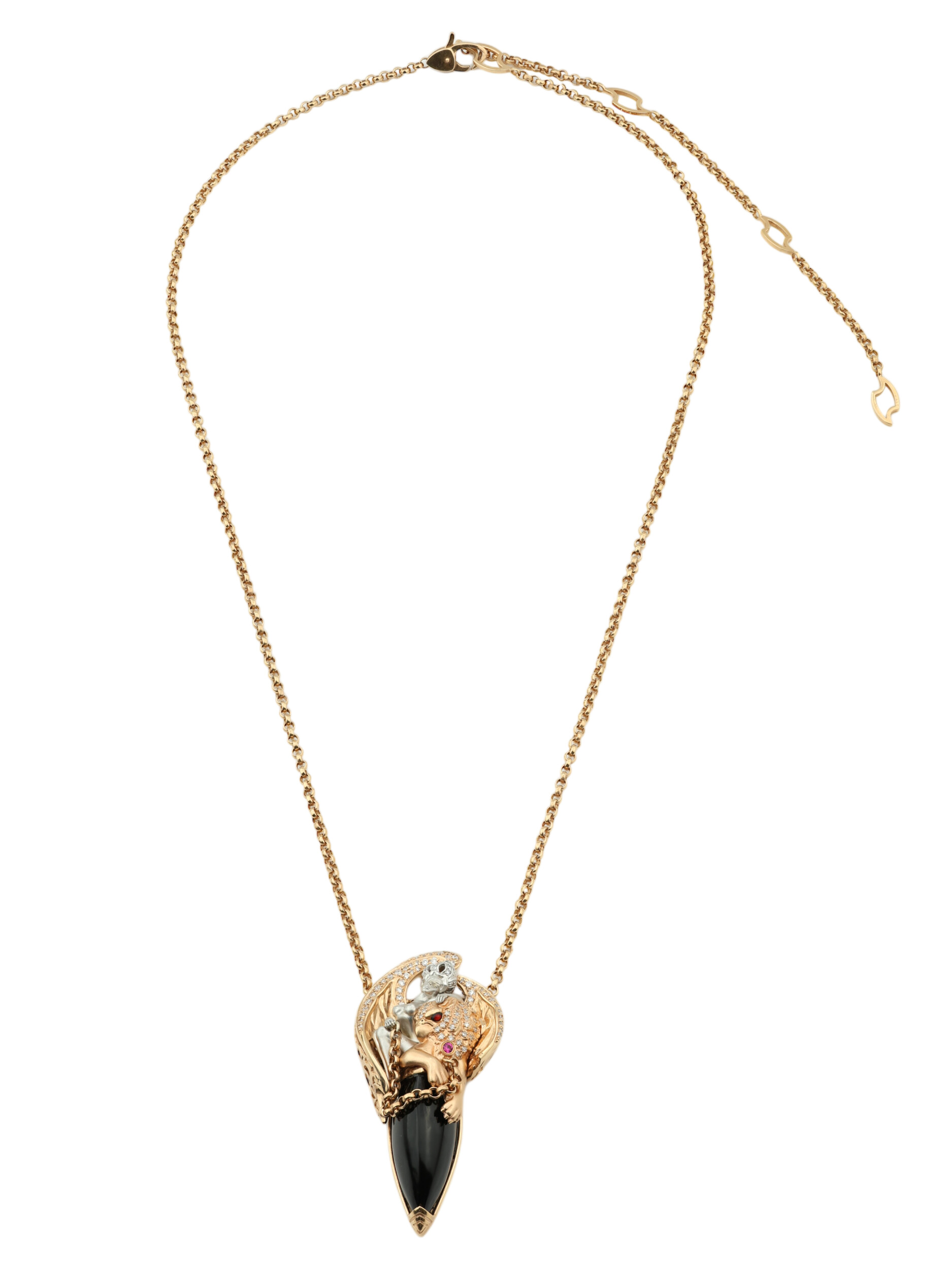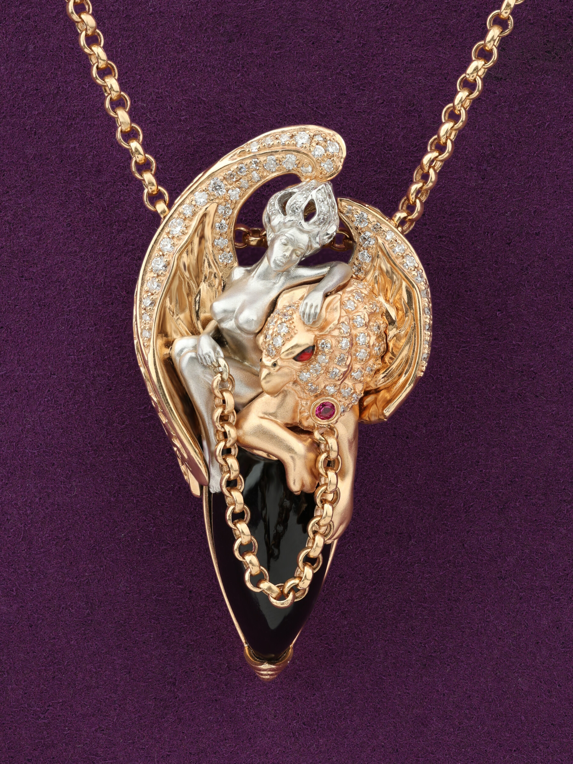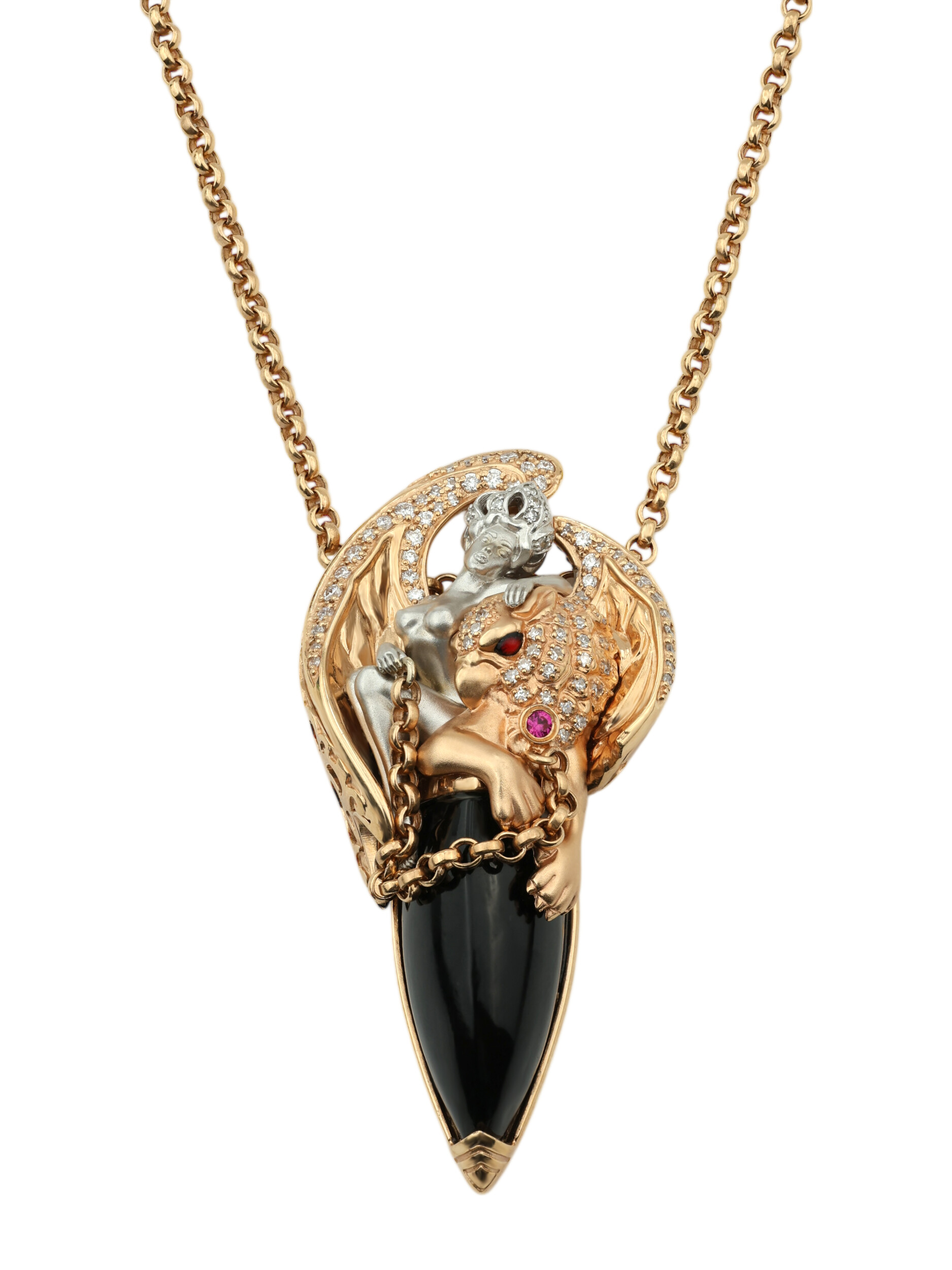 Колье из золота c эмаль, бриллиантами, рубином и ониксом
