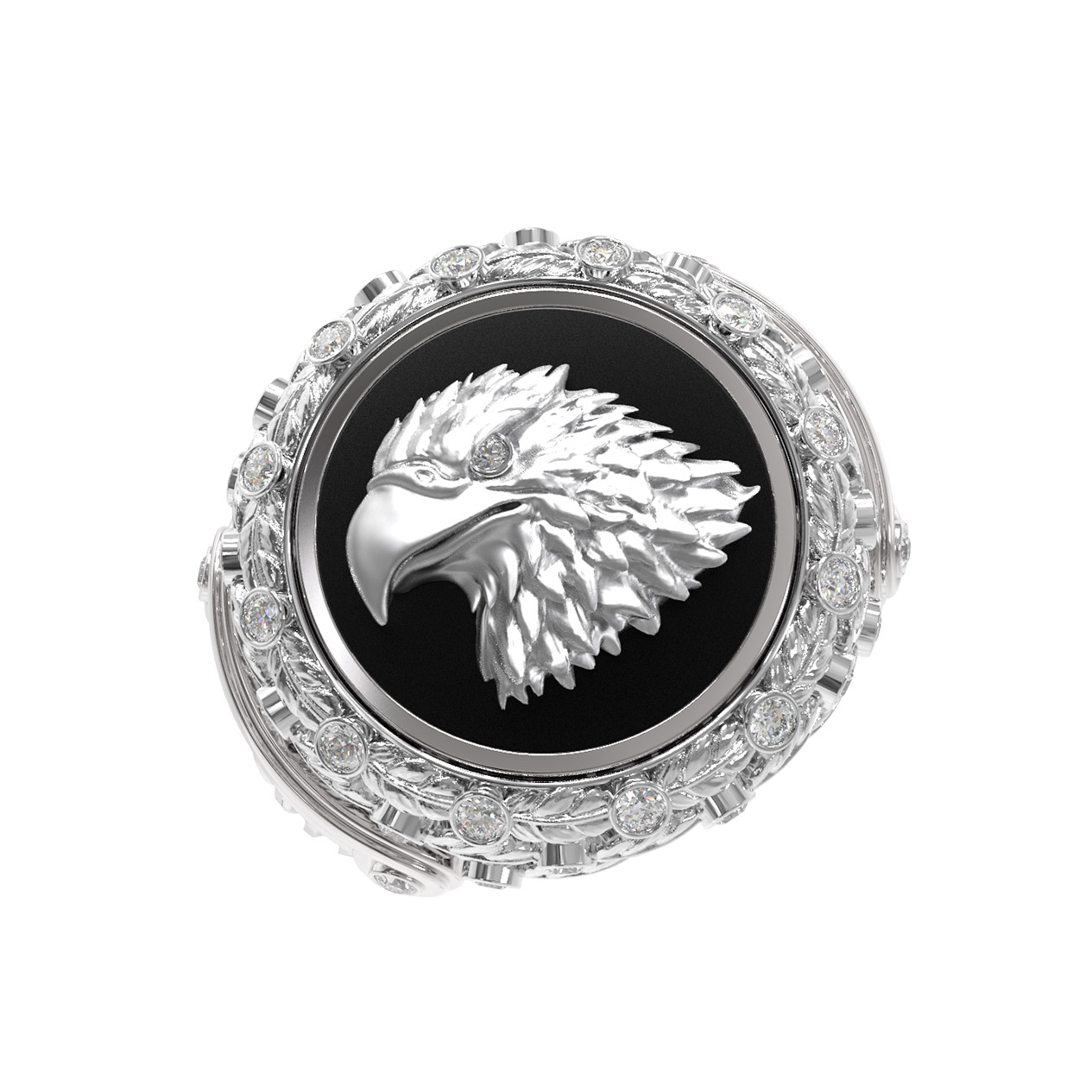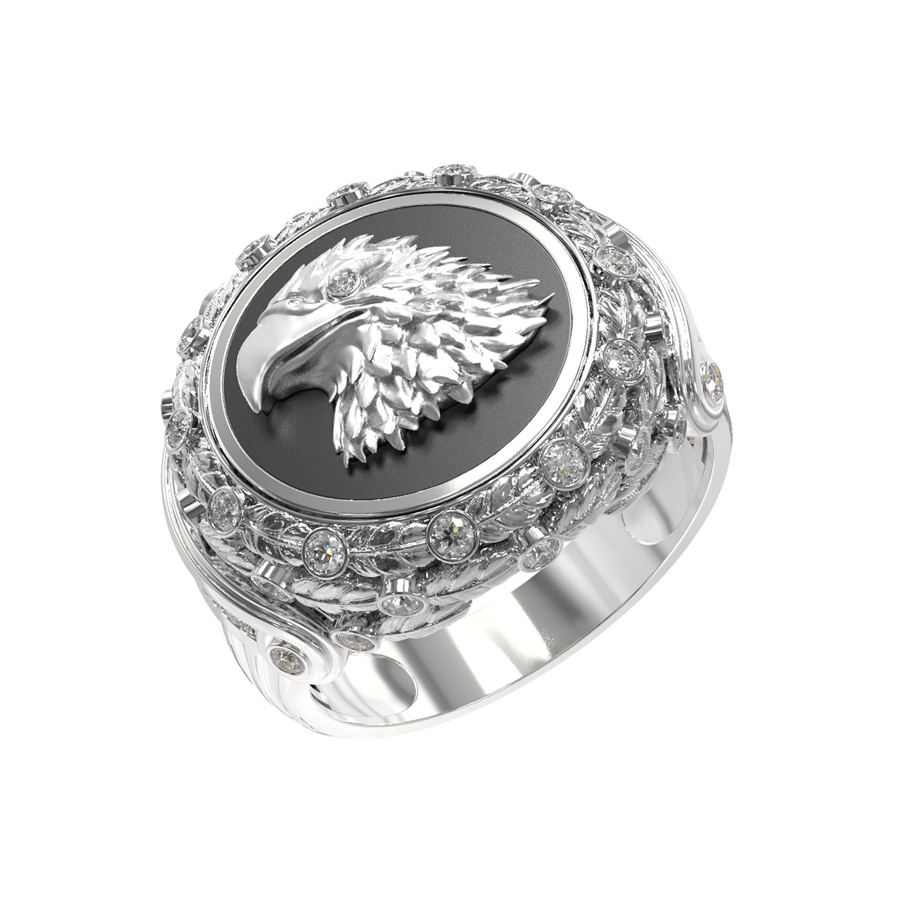 Кольцо из белого золота c бриллиантами и ониксом