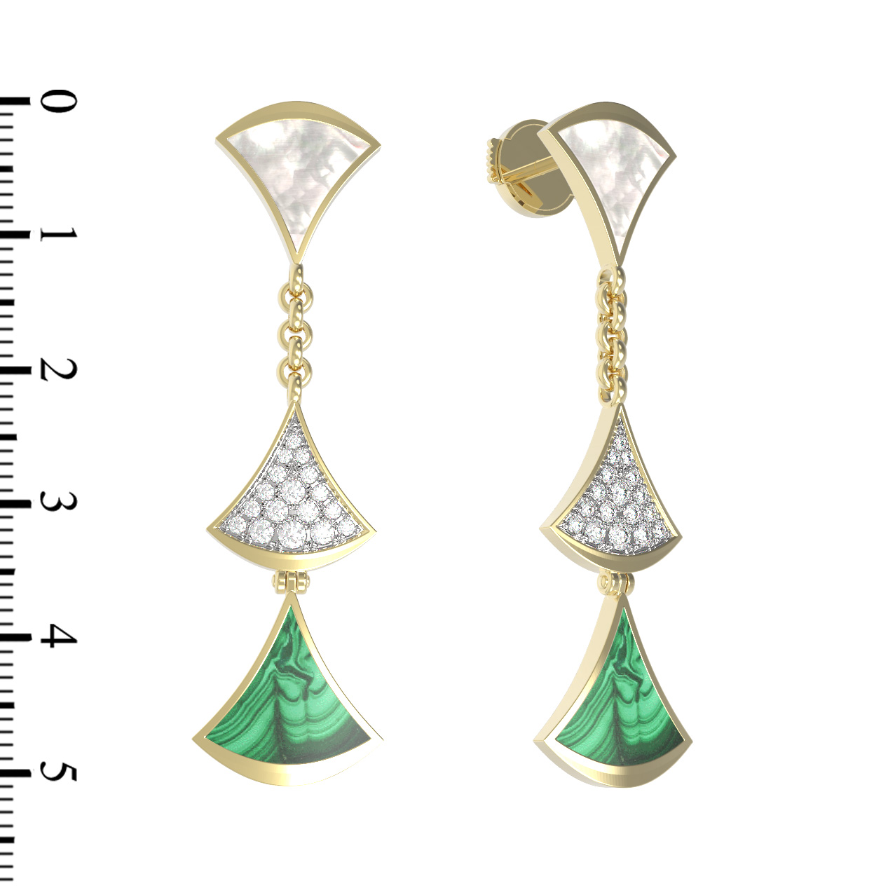 Серьги из лимонного золота c бриллиантами, малахитом и перламутром