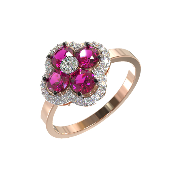 Кольцо из золота c бриллиантами и рубином