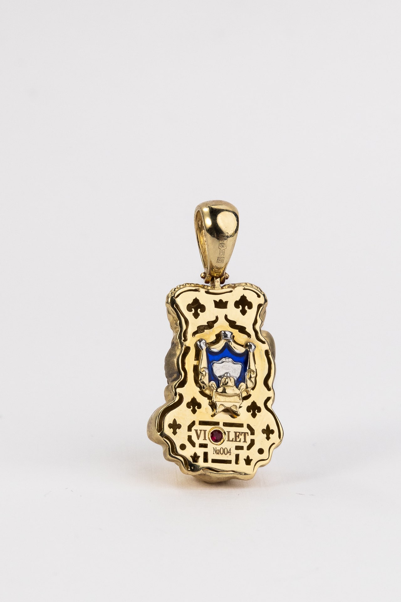 Подвеска из лимонного золота c эмаль, бриллиантами и рубином