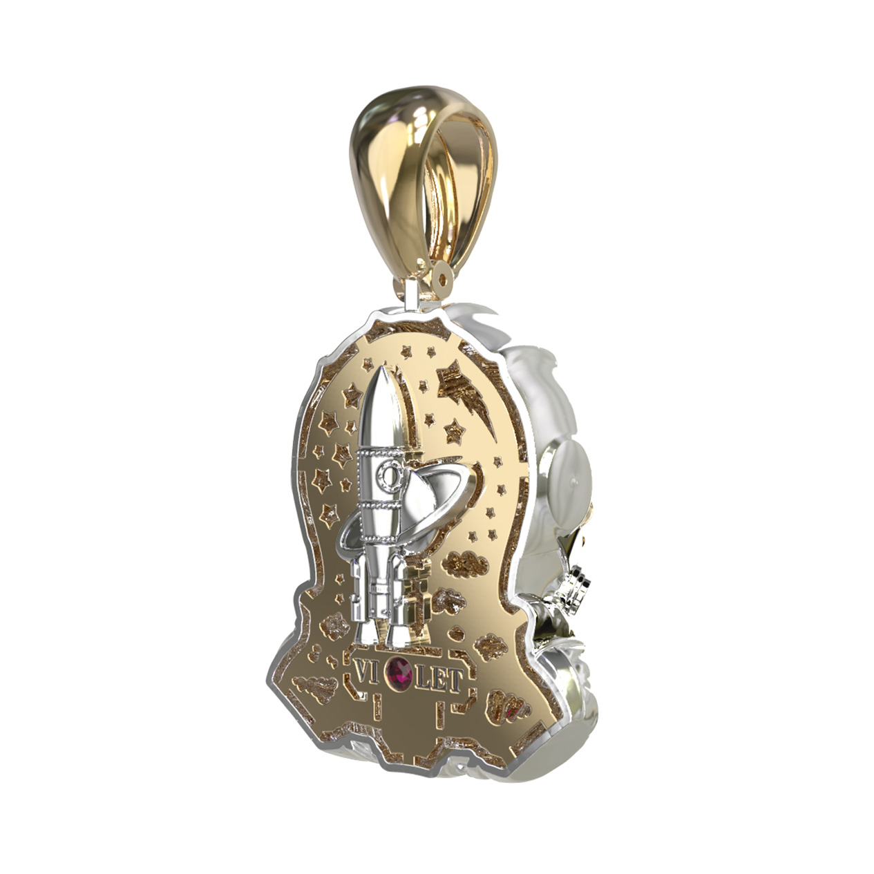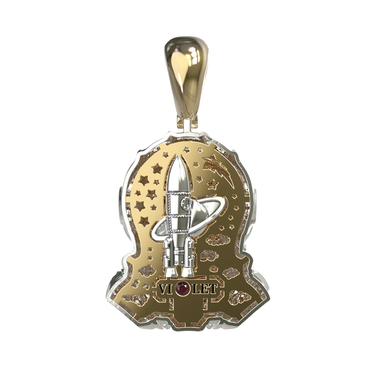 Подвеска из лимонного золота c эмаль, бриллиантами и рубином