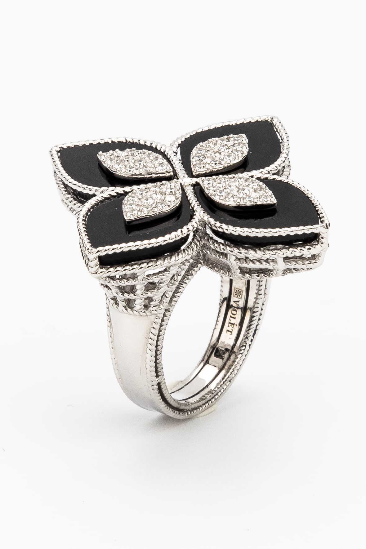 Кольцо из белого золота c бриллиантами и ониксом