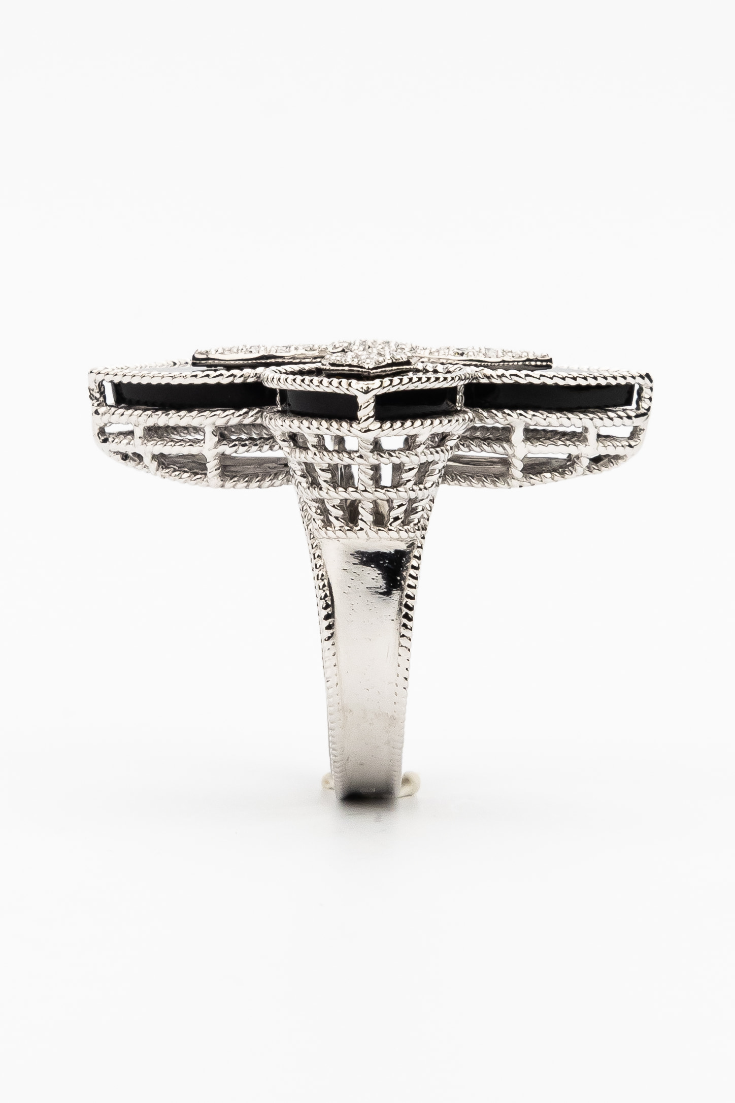 Кольцо из белого золота c бриллиантами и ониксом
