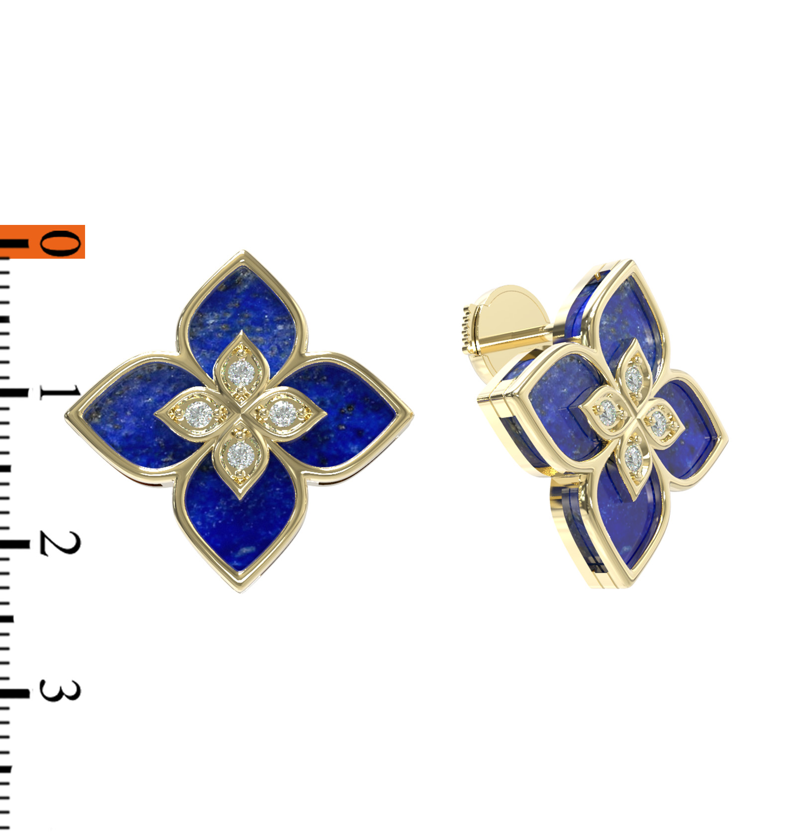 Серьги из лимонного золота c бриллиантами и лазуритом
