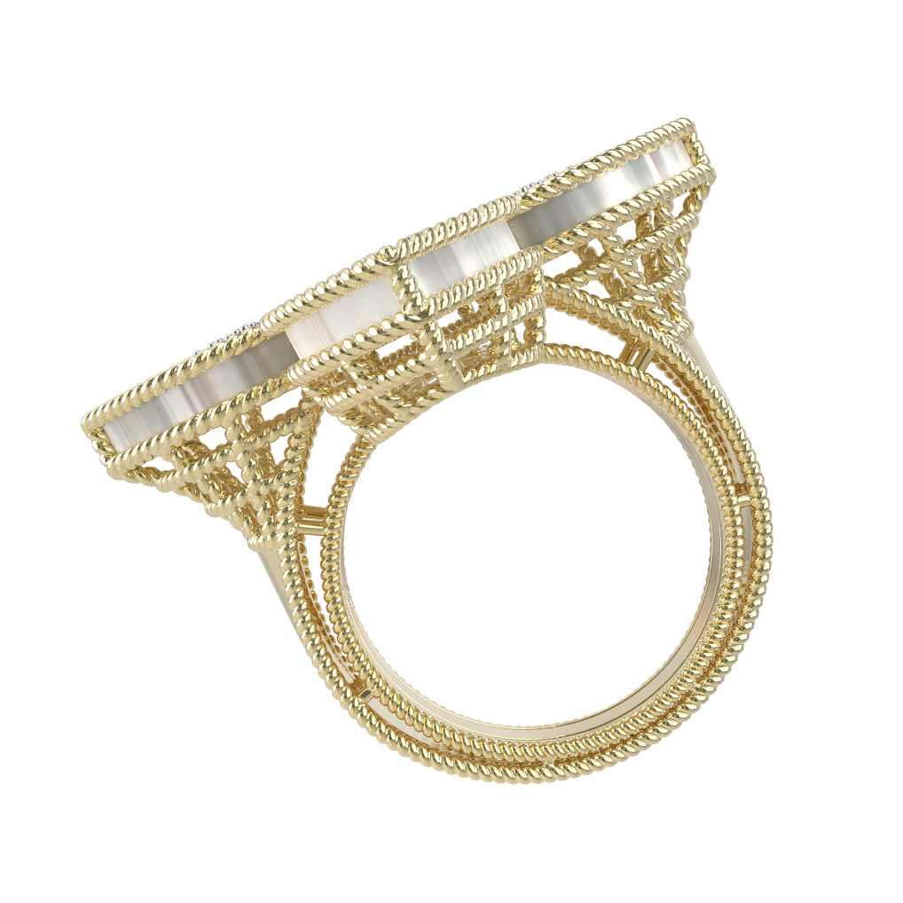 Кольцо из лимонного золота c бриллиантами и перламутром