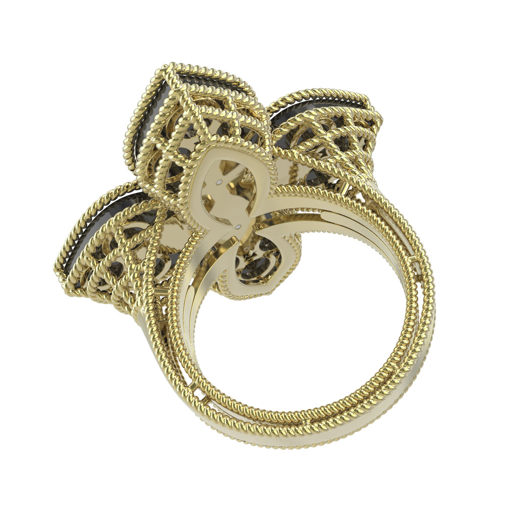 Кольцо из лимонного золота c бриллиантами и ониксом