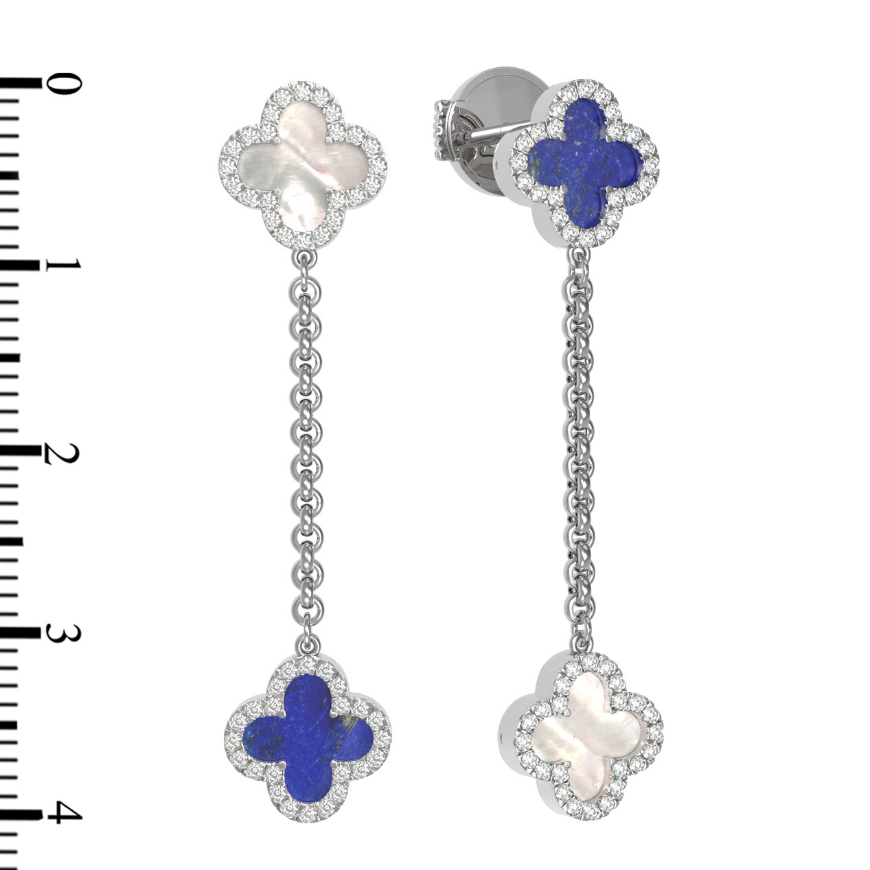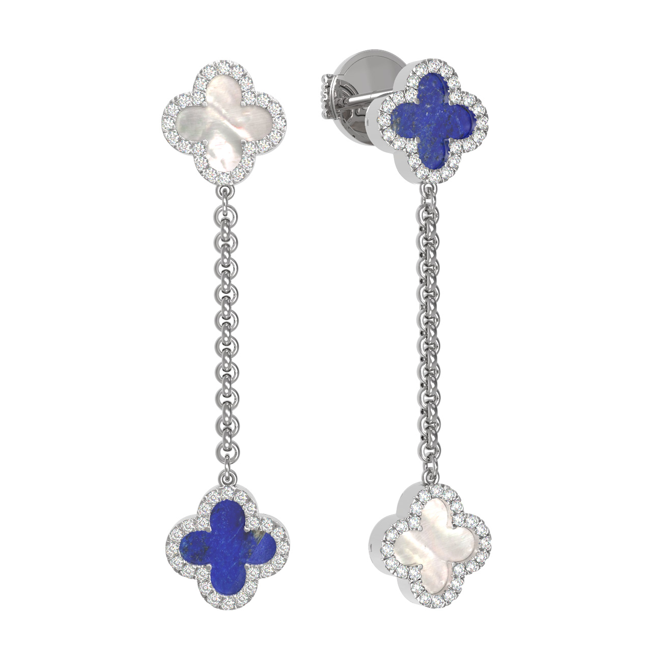 Серьги из белого золота c бриллиантами, лазуритом и перламутром