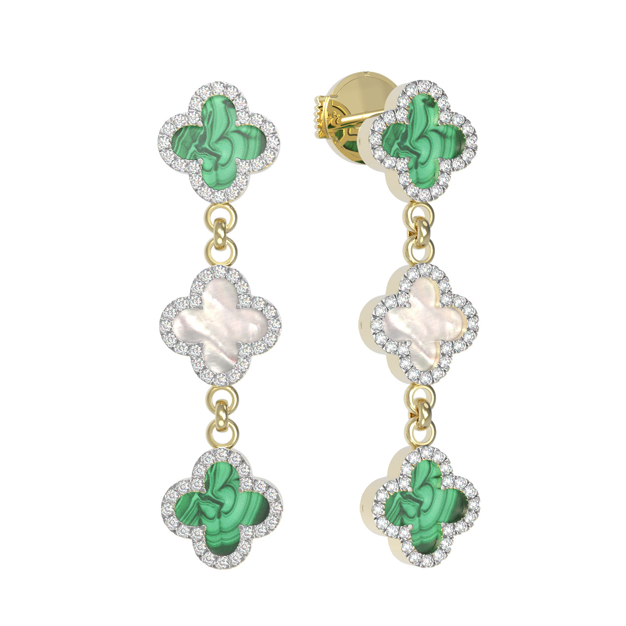 Серьги из лимонного золота c бриллиантами, малахитом и перламутром