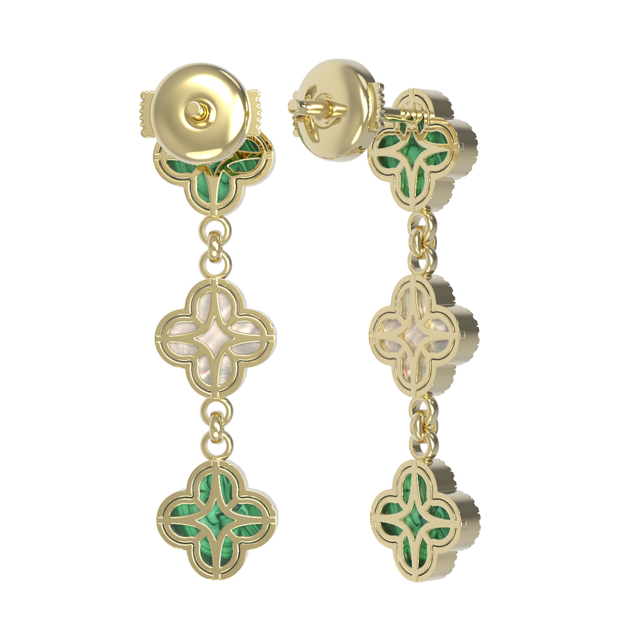 Серьги из лимонного золота c бриллиантами, малахитом и перламутром
