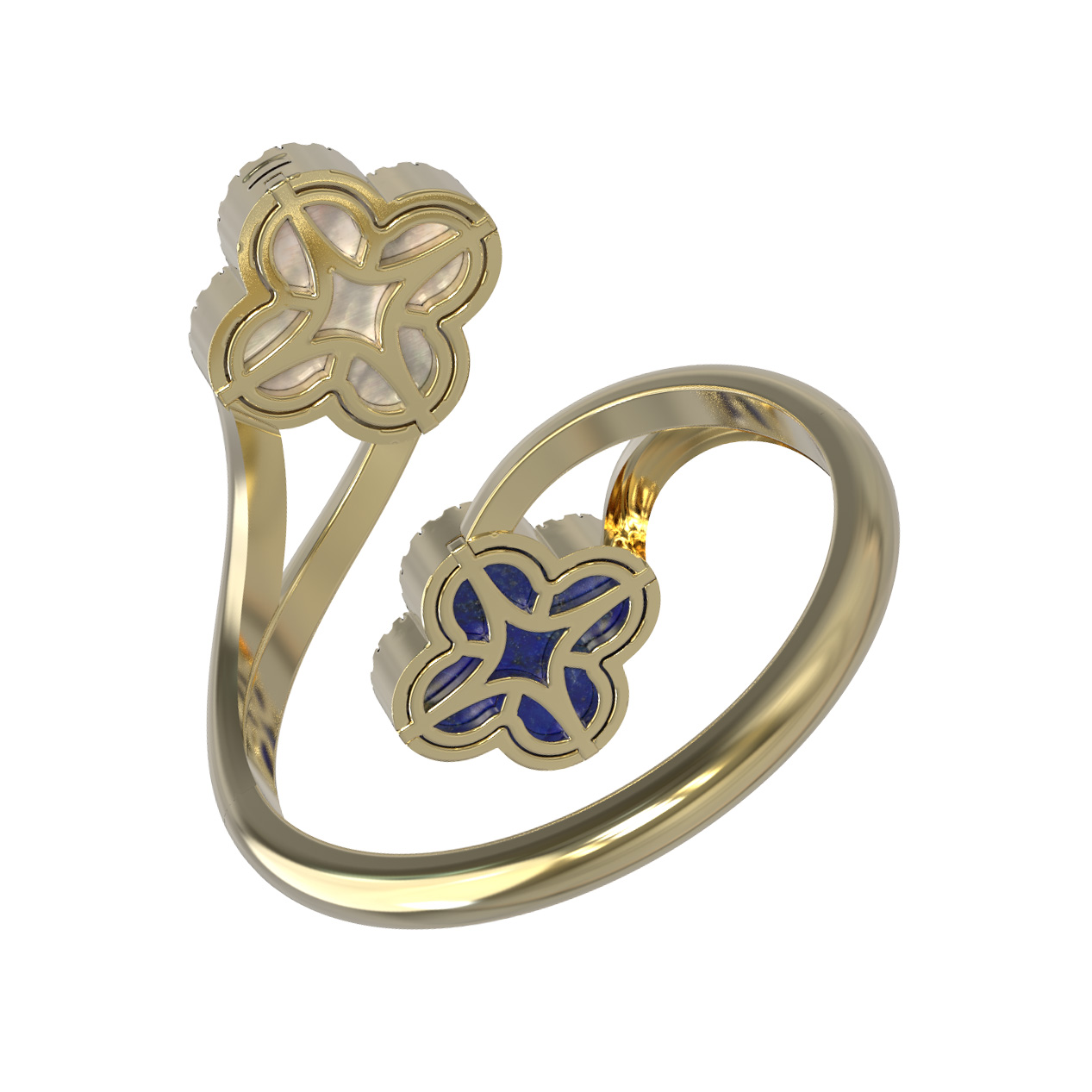 Кольцо из лимонного золота c бриллиантами, лазуритом и перламутром