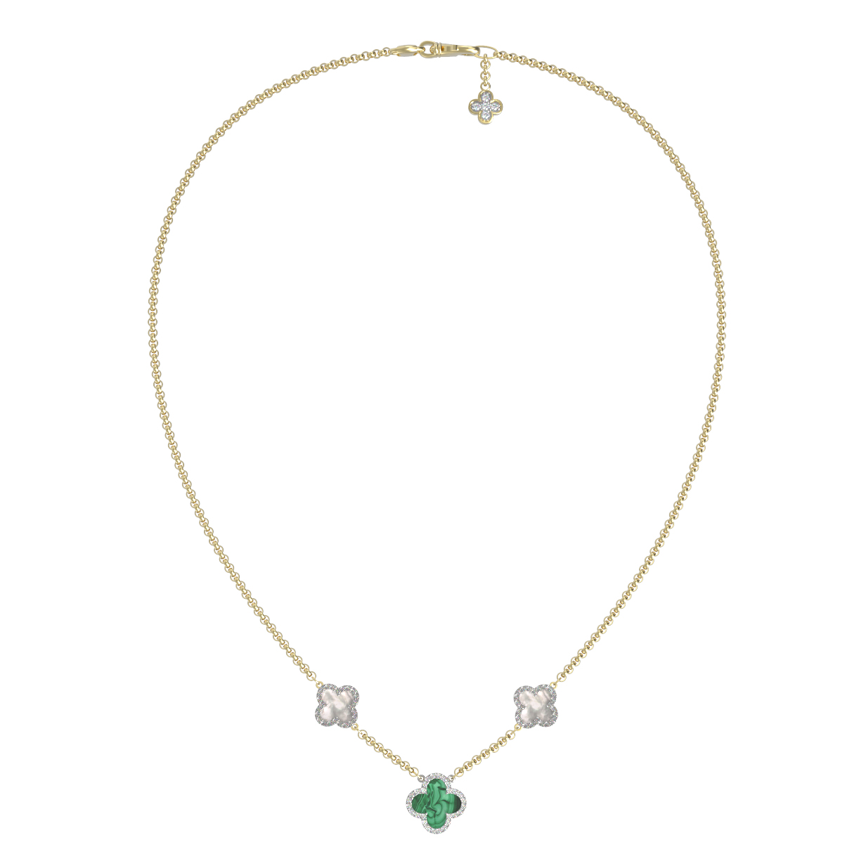 Колье из лимонного золота c бриллиантами, малахитом и перламутром