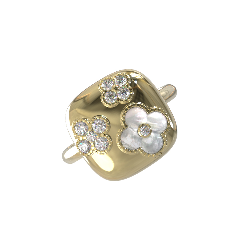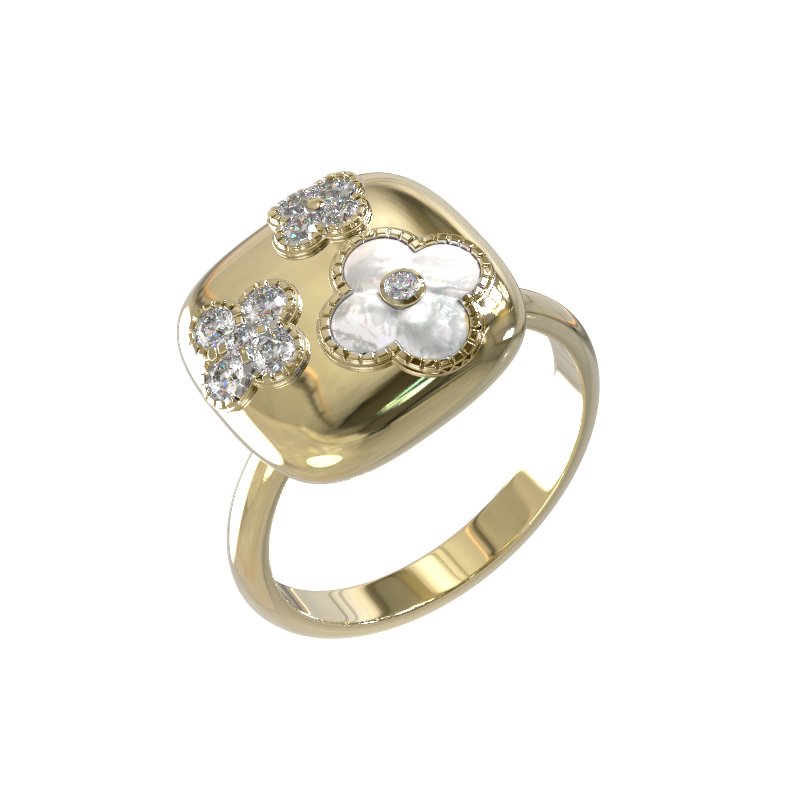 Кольцо из лимонного золота c бриллиантами и перламутром