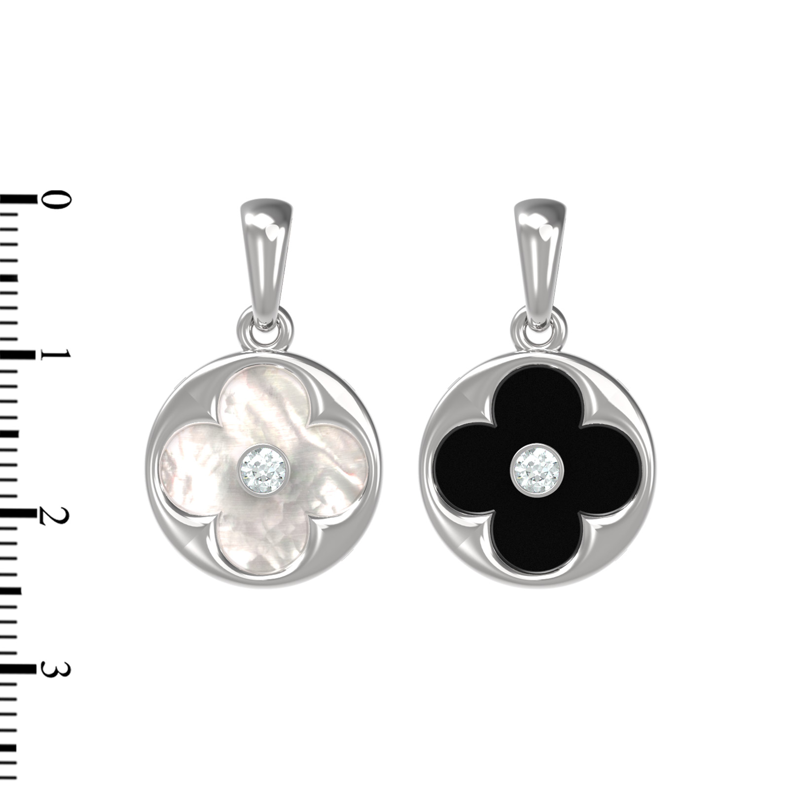 Подвеска из белого золота c бриллиантами, ониксом и перламутром