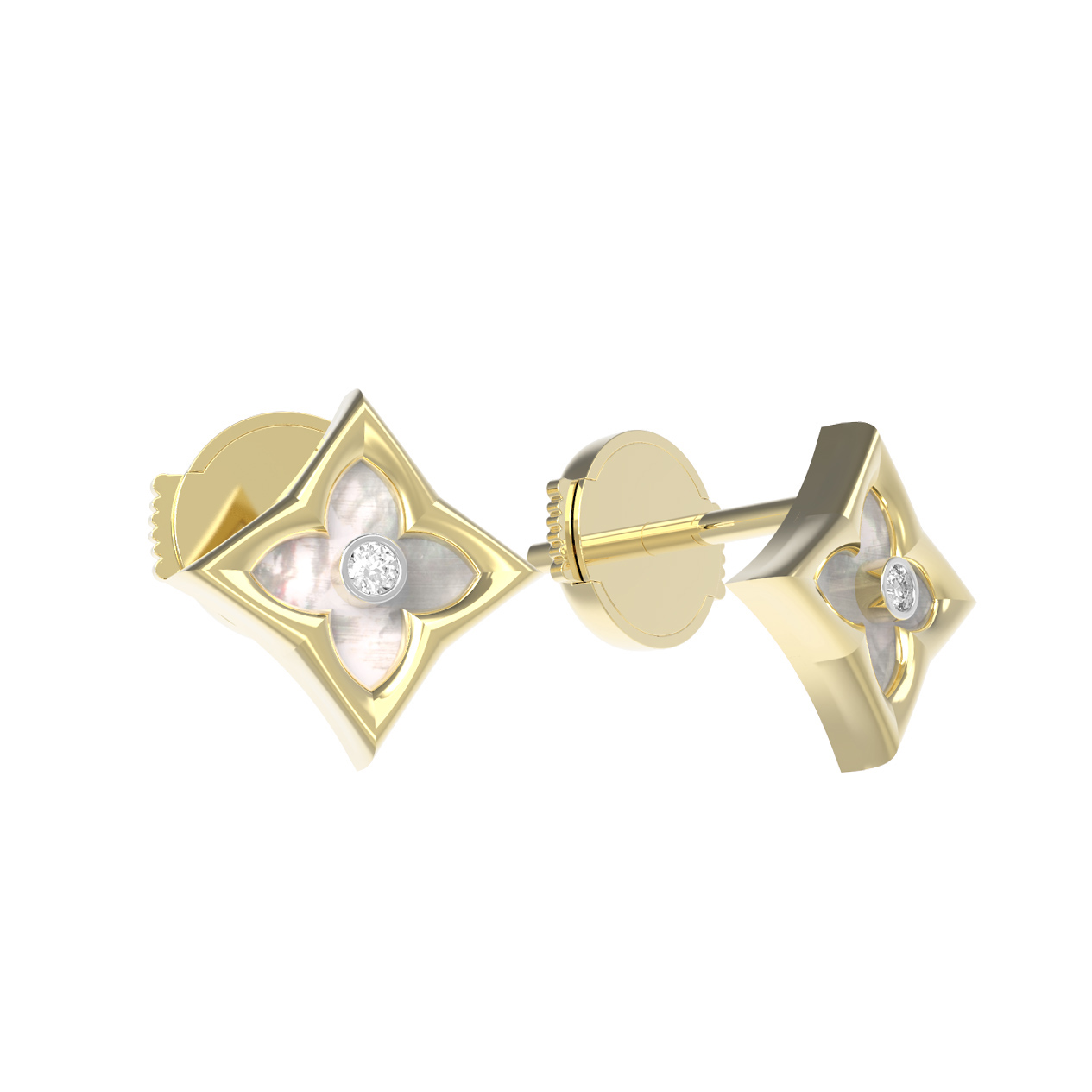 Серьги из лимонного золота c бриллиантами и перламутром