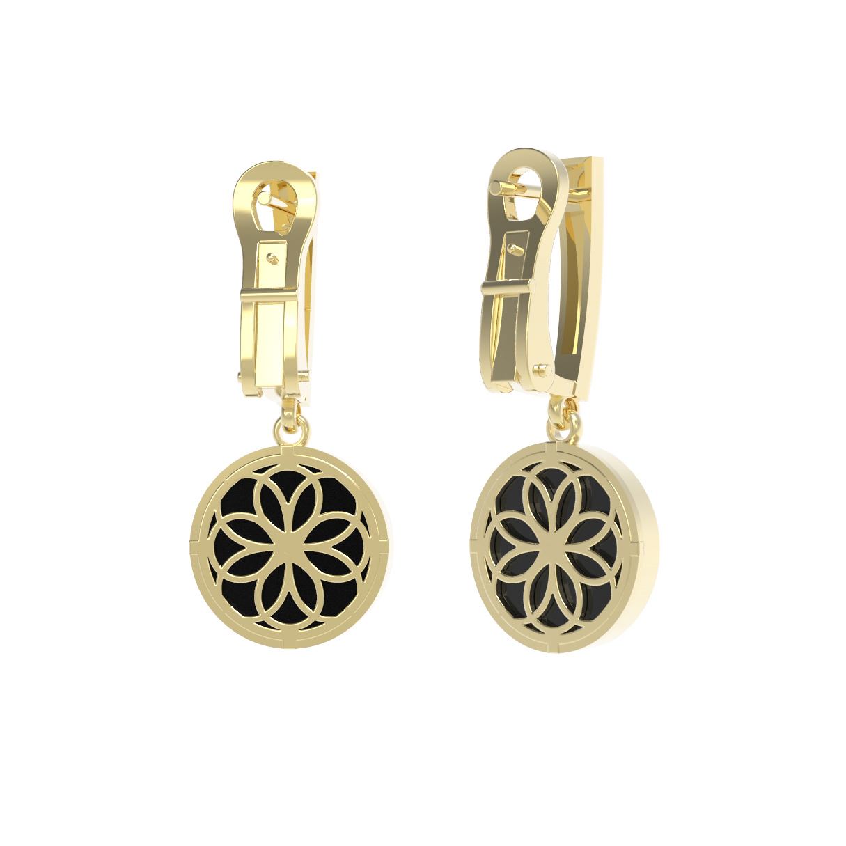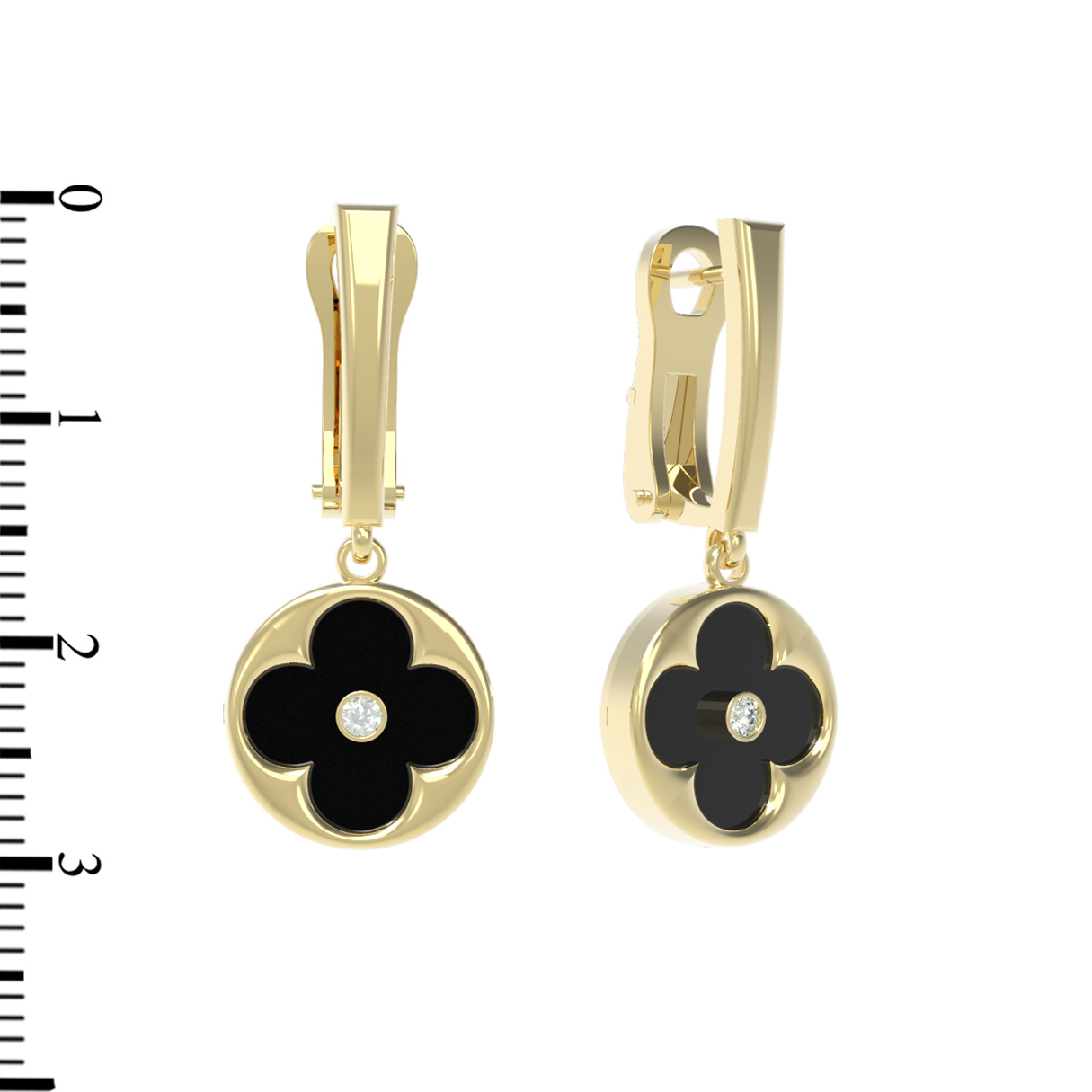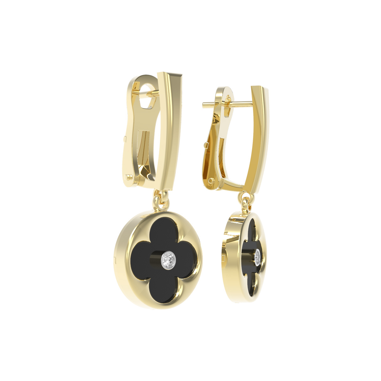 Серьги из лимонного золота c бриллиантами и ониксом