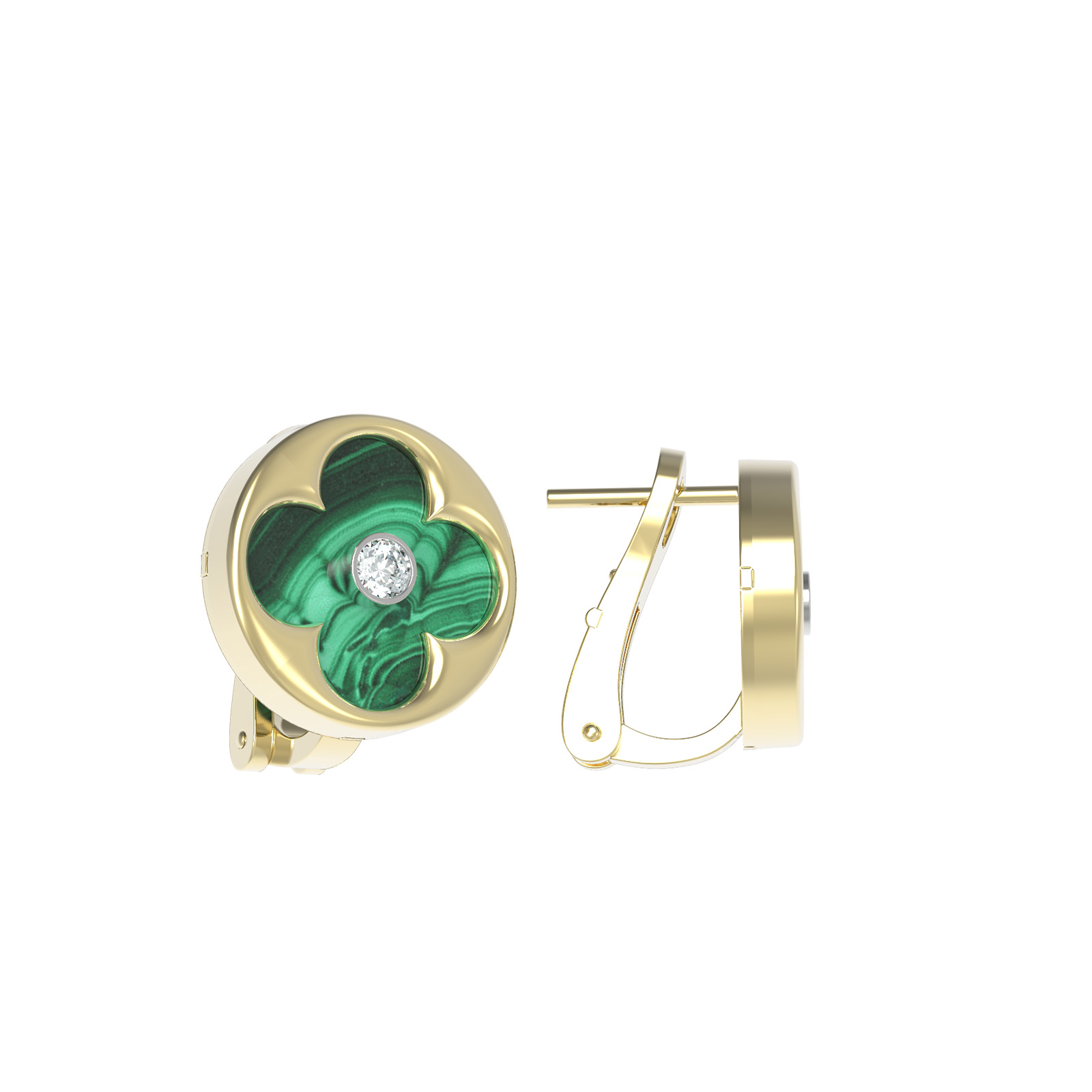 Серьги из лимонного золота c бриллиантами и малахитом