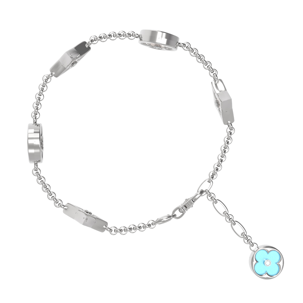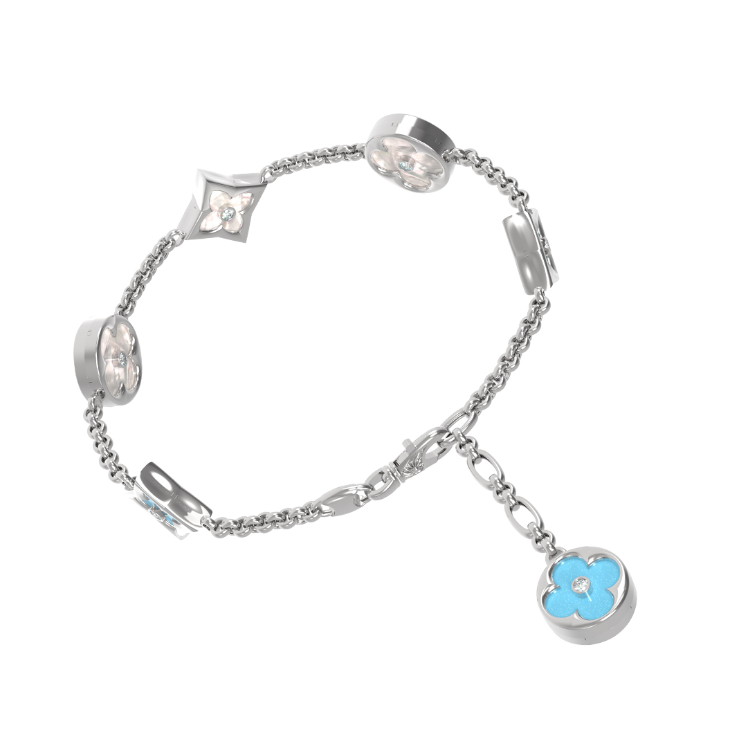 Браслет из белого золота c бриллиантами, бирюзой и перламутром